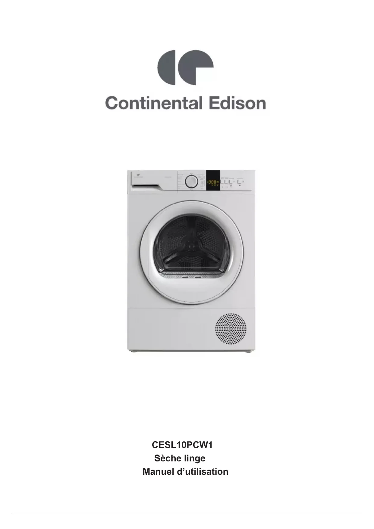 CESL10PCW1 - Sèche-linge CONTINENTAL EDISON - Notice d'utilisation et mode d'emploi gratuit