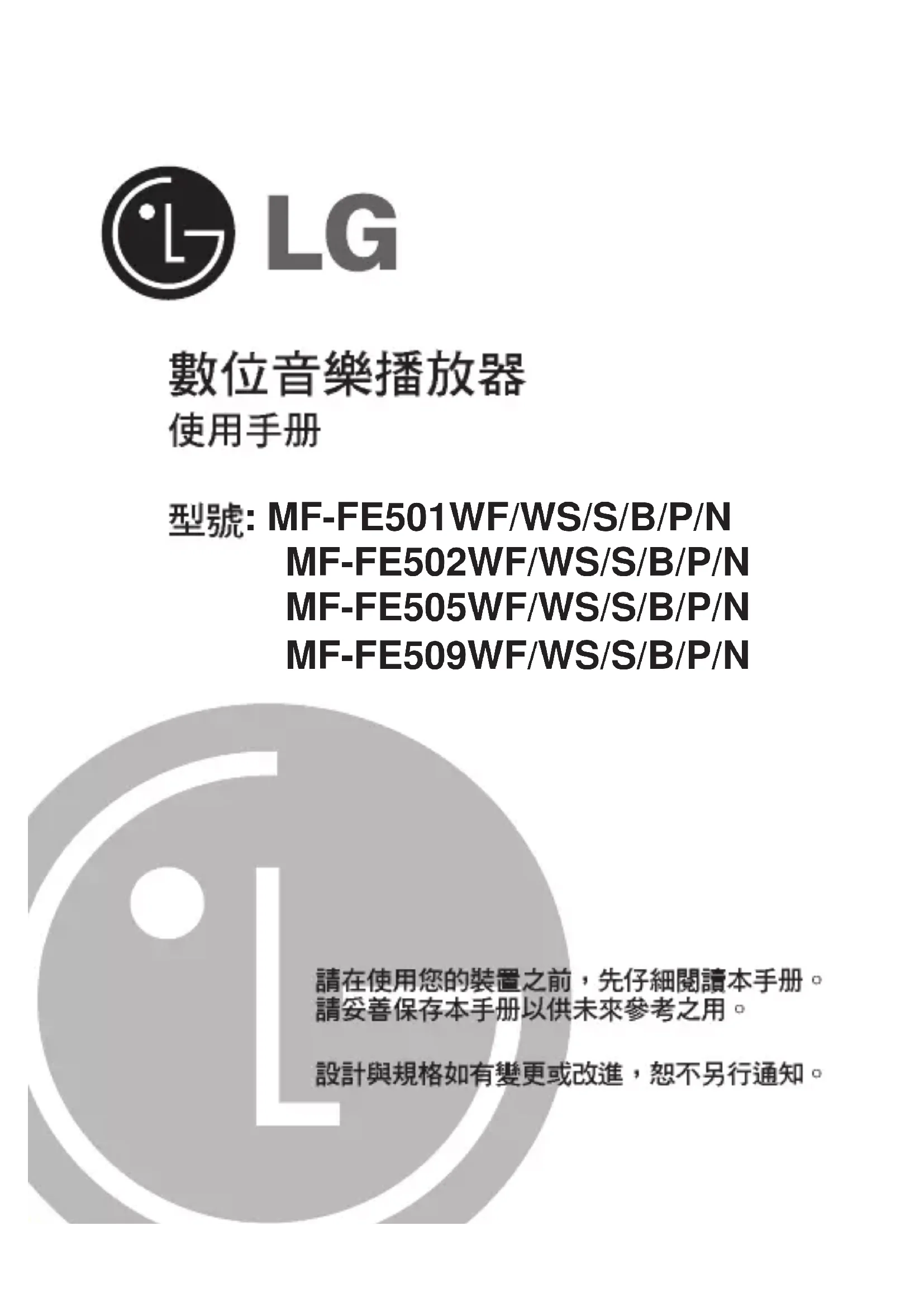 MF-FE509B - Lecteur mp3 LG - Notice d'utilisation et mode d'emploi gratuit