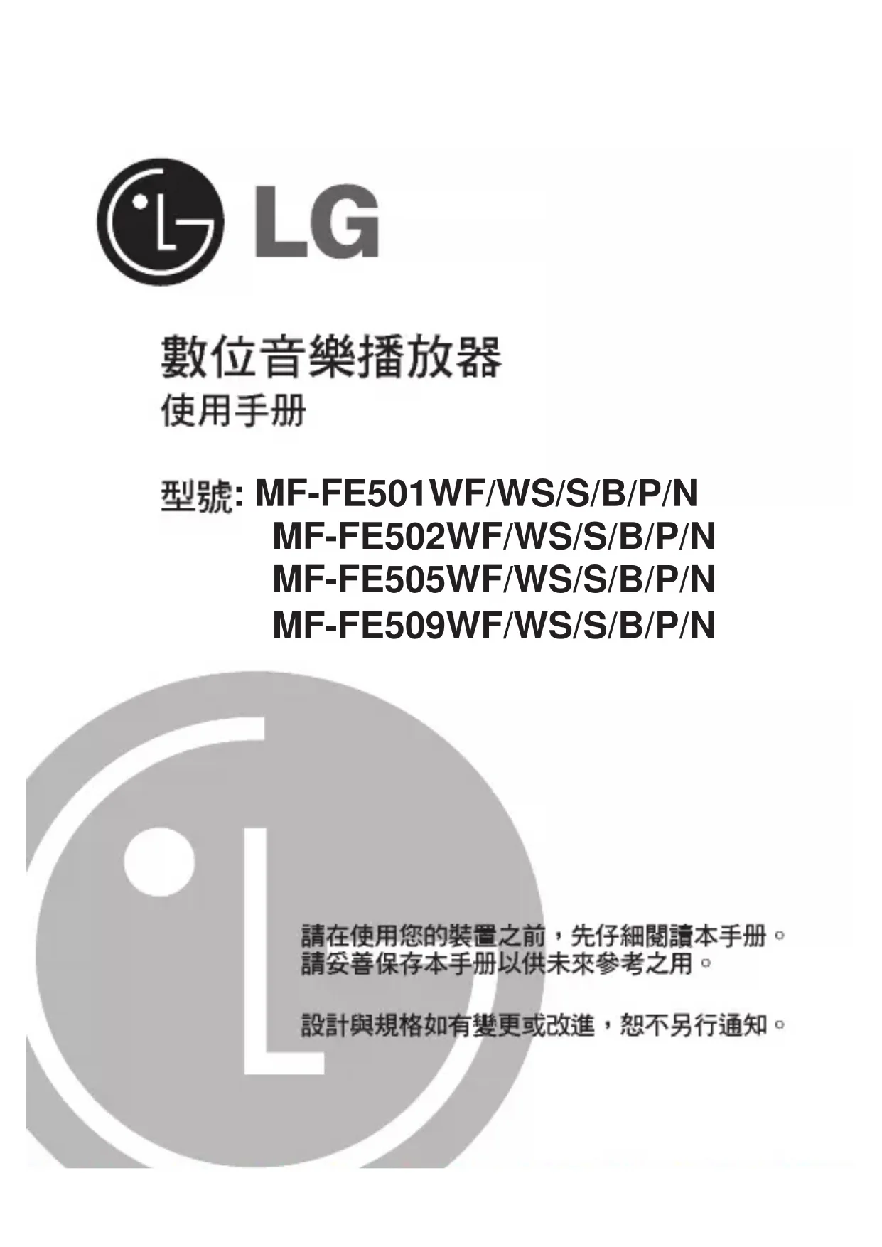 MF-FE509WF - Non catégorisé LG - Notice d'utilisation et mode d'emploi gratuit