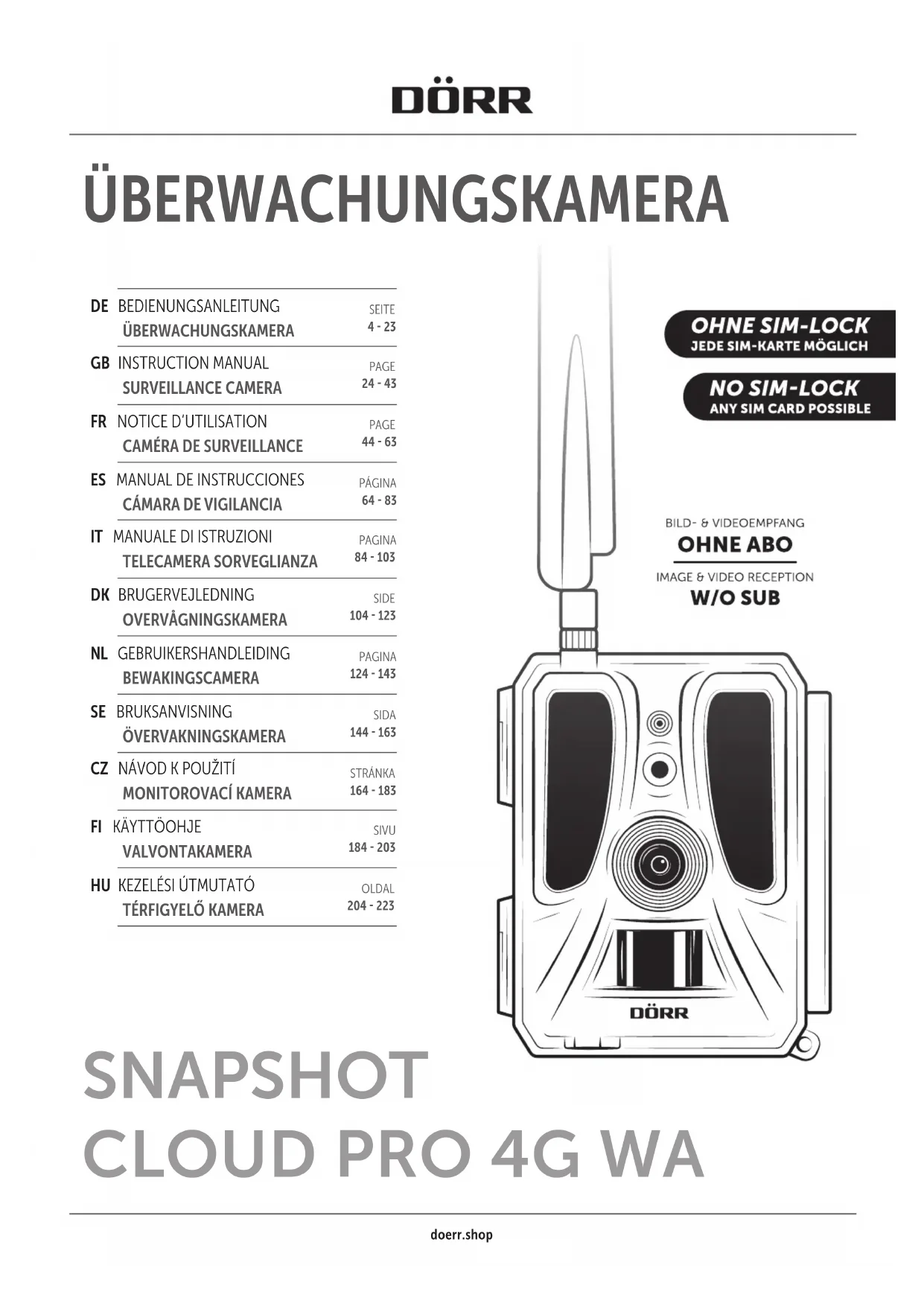 Retrouvez gratuitement la notice de l'appareil SnapShot Cloud Pro 4G Dörr au format PDF.