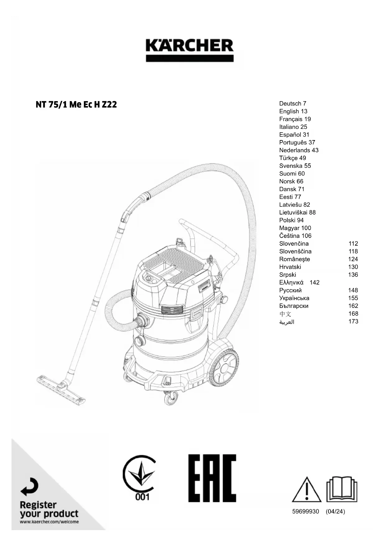 Retrouvez gratuitement la notice de l'appareil NT 75/1 Me Kärcher au format PDF.
