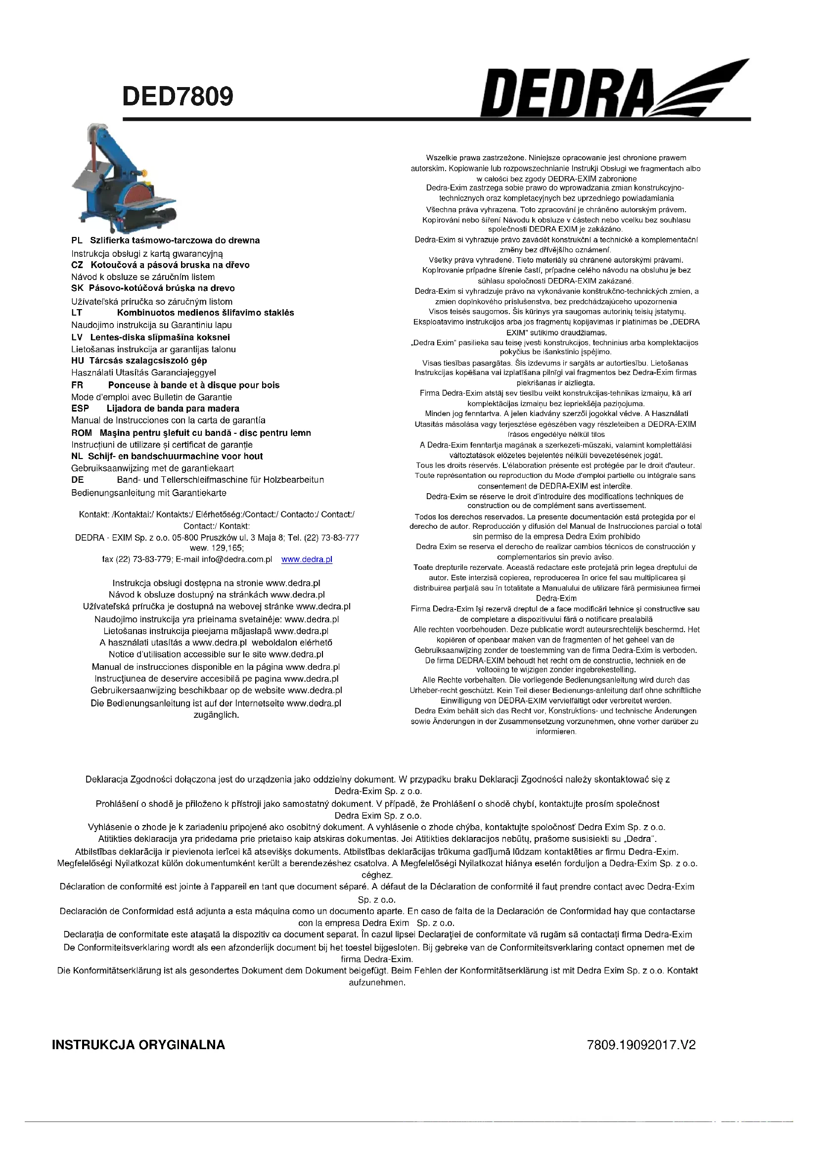 conditions techniques et d'utilisation décrites dans le Mode d'Emploi. Nous garantissons la marchandise pour 24 mois à compter de la date de l'achat inscrite dans le document présent. La garantie est valable sur tout le territoire de la République de Pologne et UE. Les adresses de services des pays particuliers sont disponibles sur la page www.dedra.pl. A défaut de service dans le pays donné, les obligations du garant sont réalisées par le service central. La réclamation devrait être déposée à l'écrit pendant la période de garantie