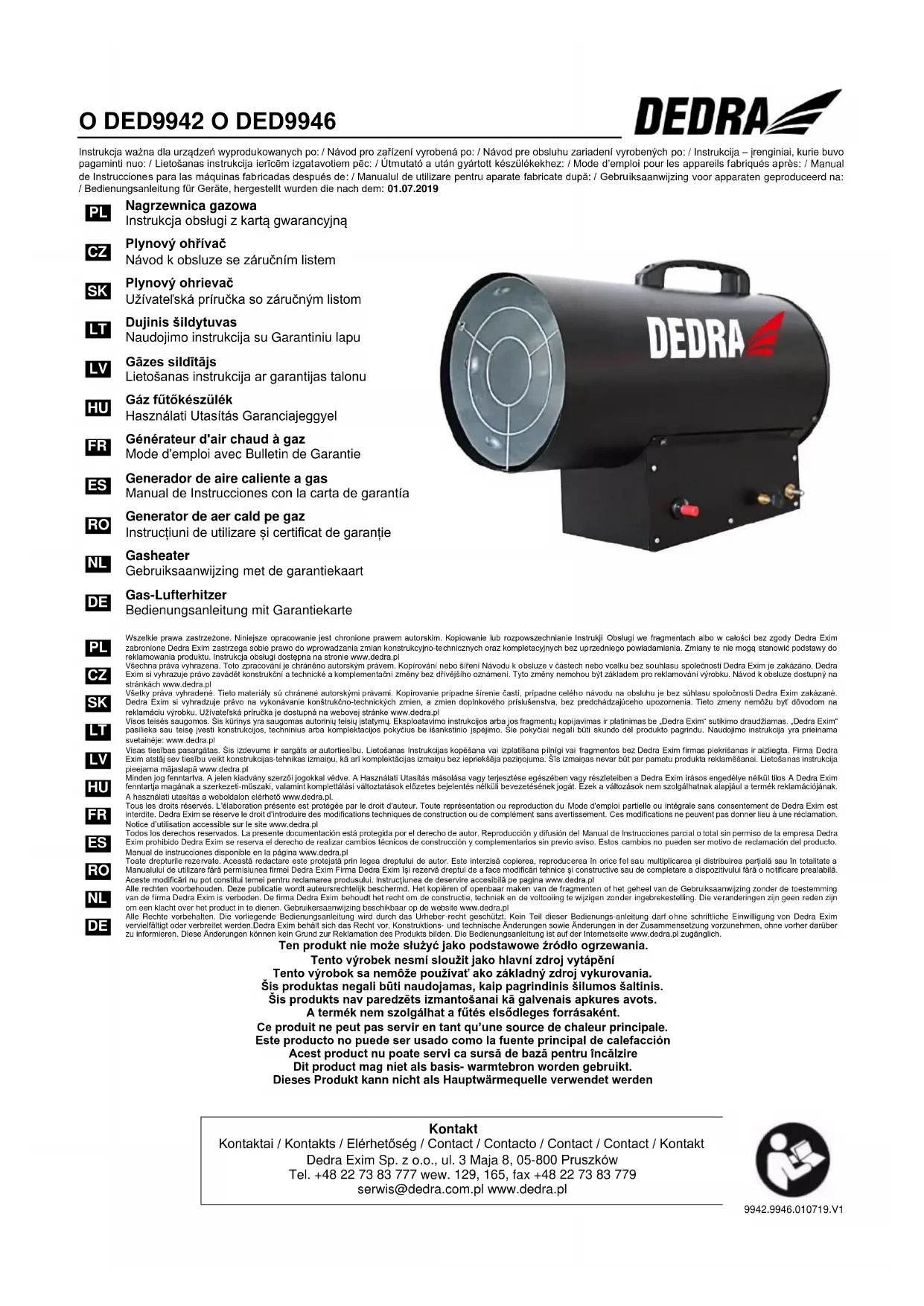 Tous les droits réservés. L'élaboration présente est protégée par le droit d'auteur. Toute représentation ou reproduction du Mode d'emploi partielle ou intégrale sans consentement de Dedra Exim est interdite. Dedra Exim se réserve le droit d'introduire des modifications techniques de construction ou de complément sans avertissement. Ces modifications ne peuvent pas donner lieu à une réclamation. Notice d’utilisation accessible sur le site www.dedra.pl