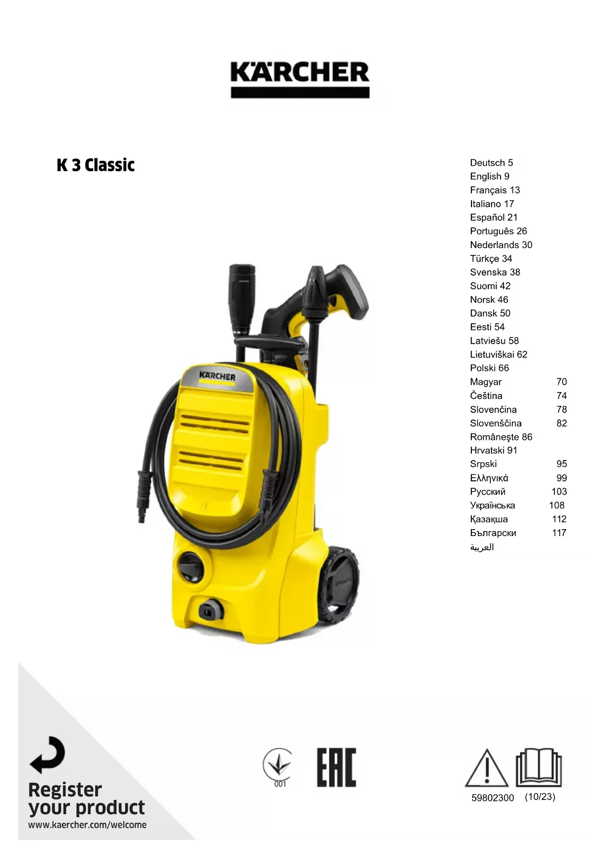 Retrouvez gratuitement la notice de l'appareil K 3 Classic Kärcher au format PDF.