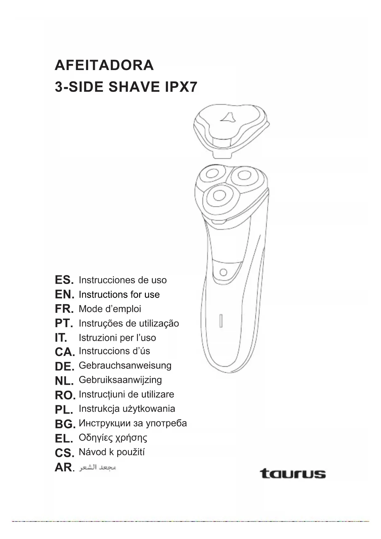 Retrouvez gratuitement la notice de l'appareil 3-Side Shave IPX7 TAURUS au format PDF.
