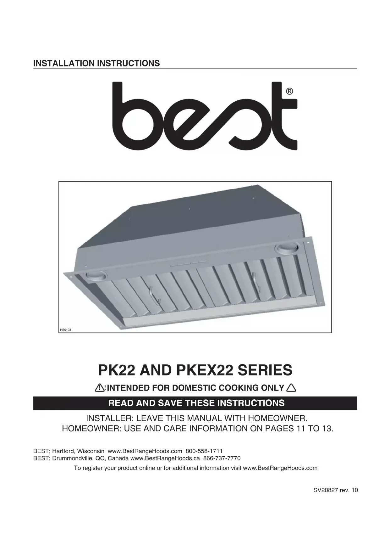 PKEX2245 - Hotte BEST - Notice d'utilisation et mode d'emploi gratuit