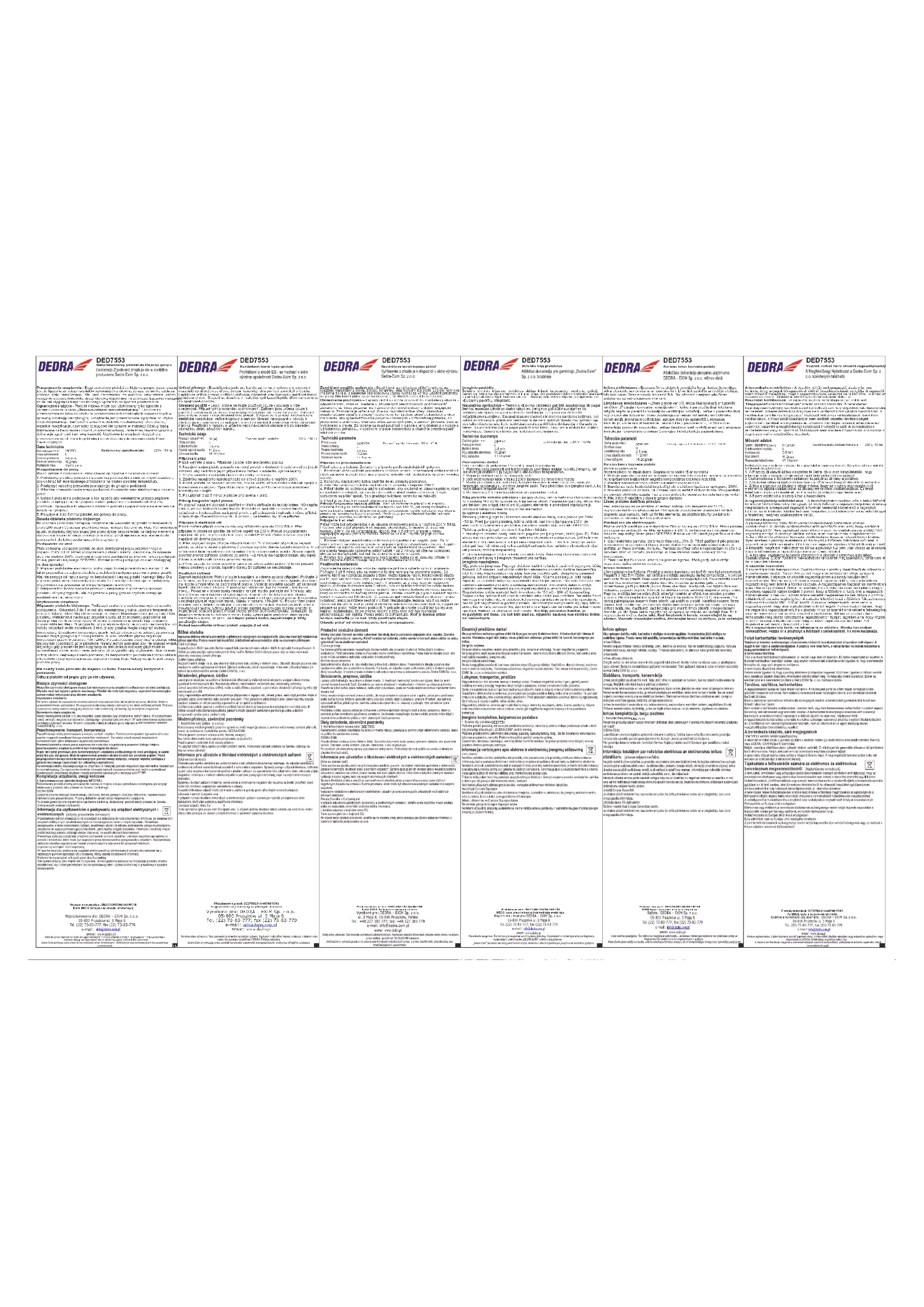 Retrouvez gratuitement la notice de l'appareil DED7553 DEDRA au format PDF.