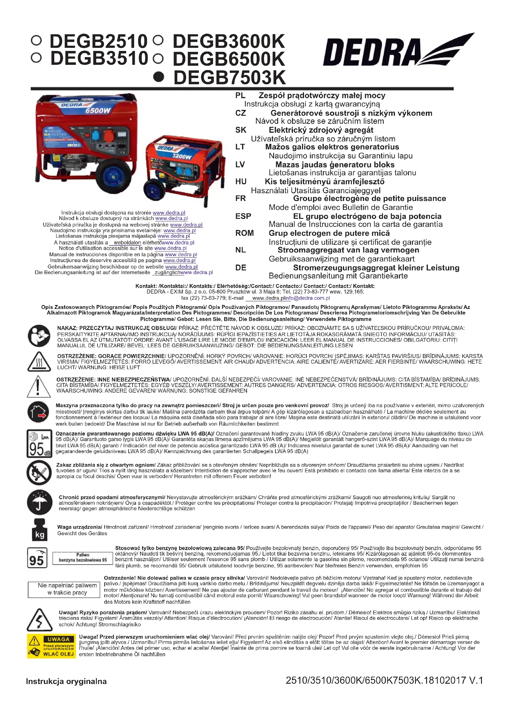 DEGB7503K - Générateur DEDRA - Notice d'utilisation et mode d'emploi gratuit