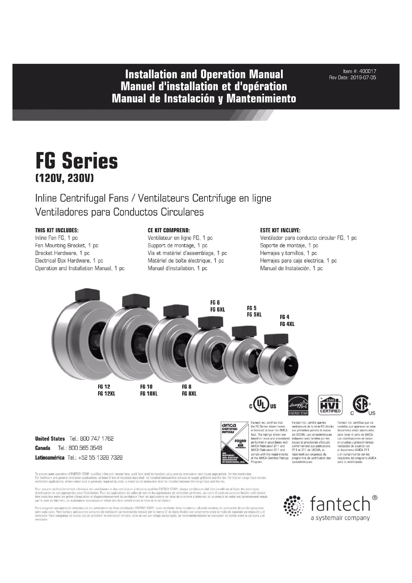 FG6XL - Ventilateur Fantech - Notice d'utilisation et mode d'emploi gratuit