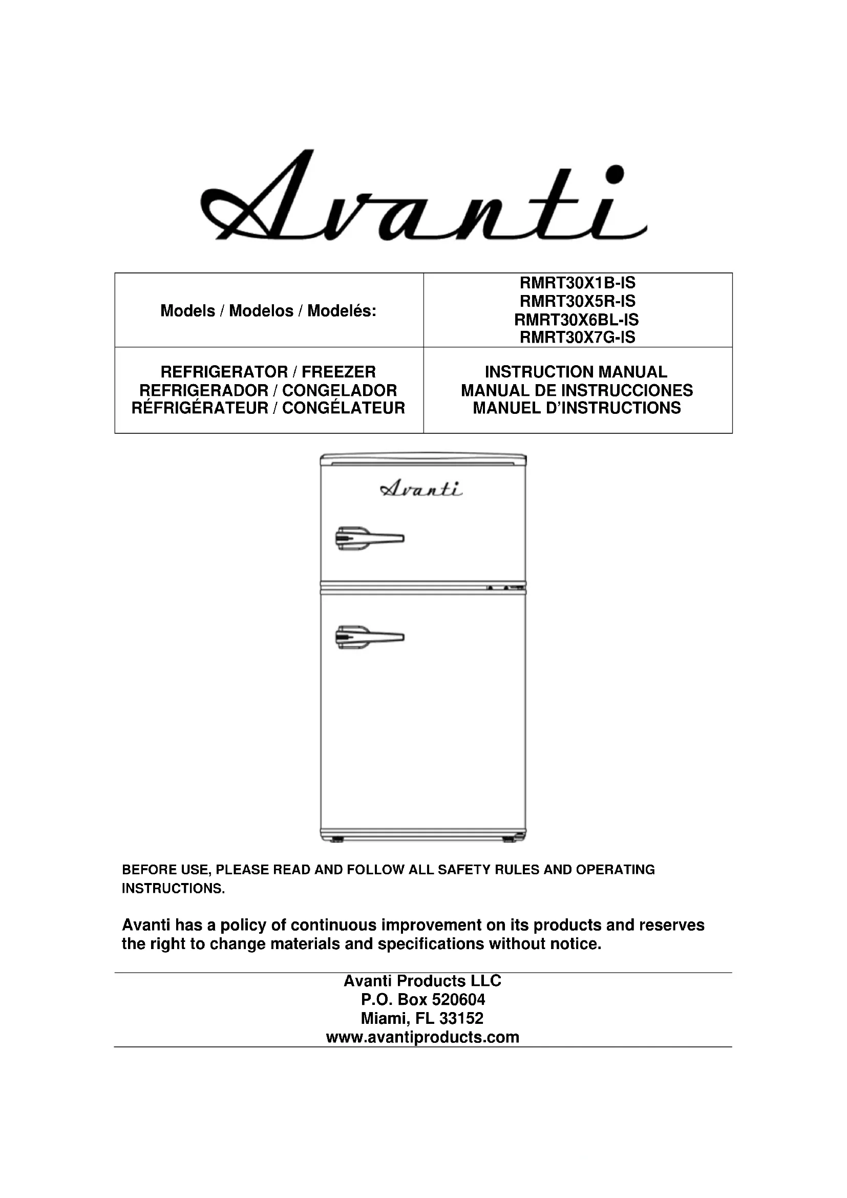 Retrouvez gratuitement la notice de l'appareil RMRT30X7G-IS Avanti au format PDF.