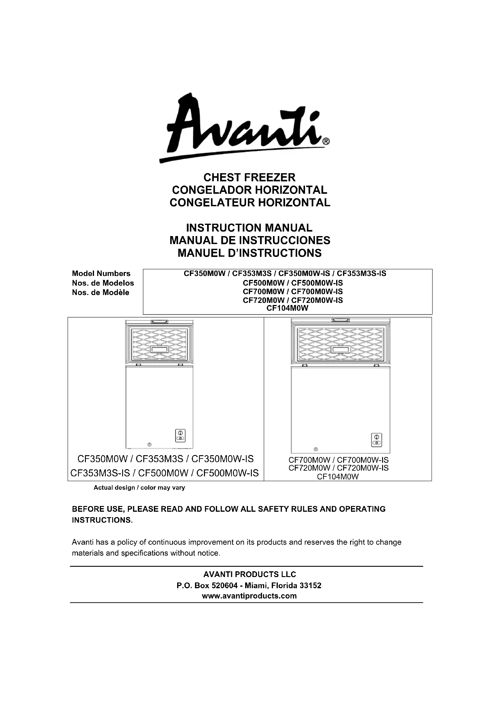 CF700M0W-IS - Congélateur Avanti - Notice d'utilisation et mode d'emploi gratuit