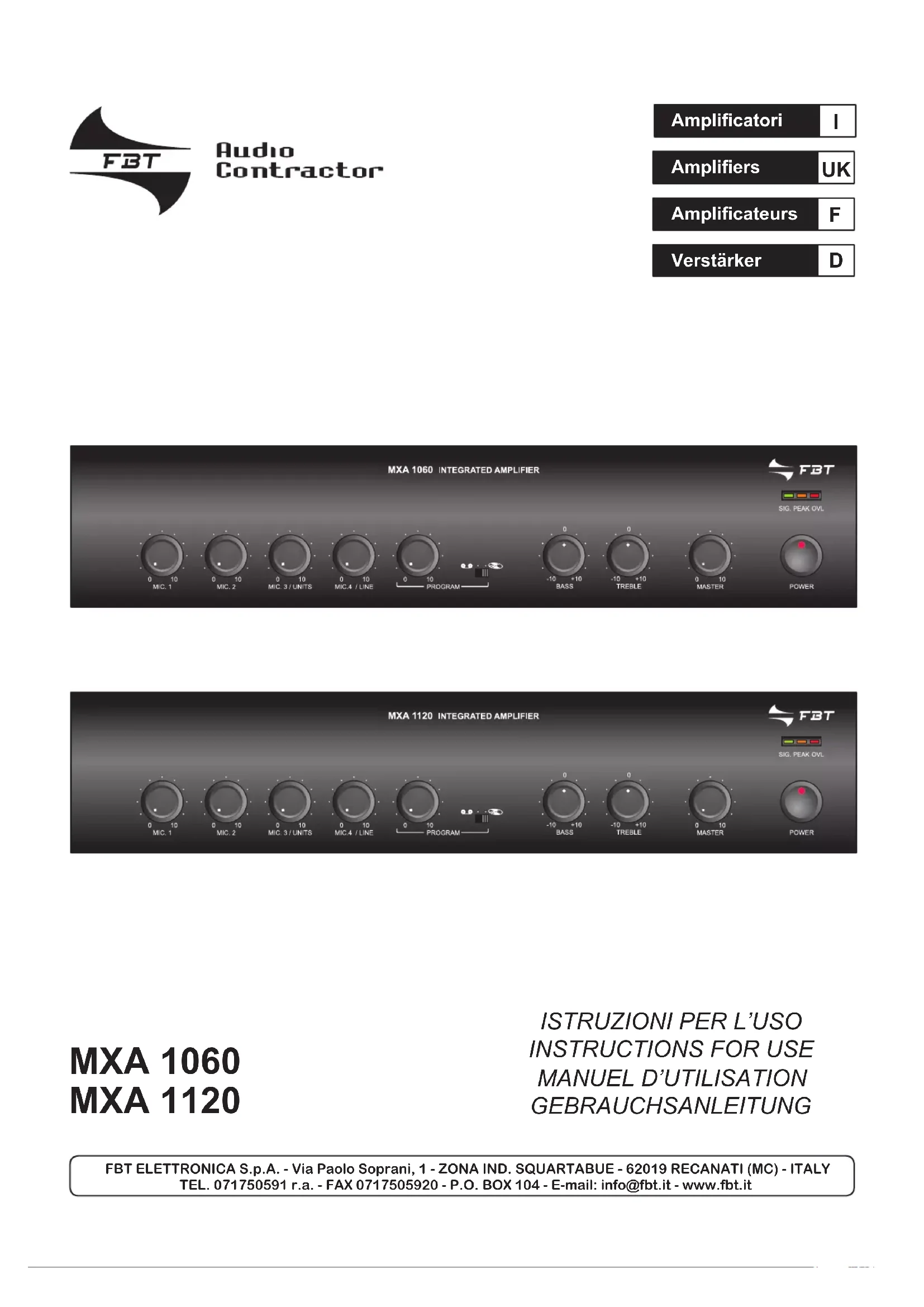 Retrouvez gratuitement la notice de l'appareil MXA 1060 FBT au format PDF.