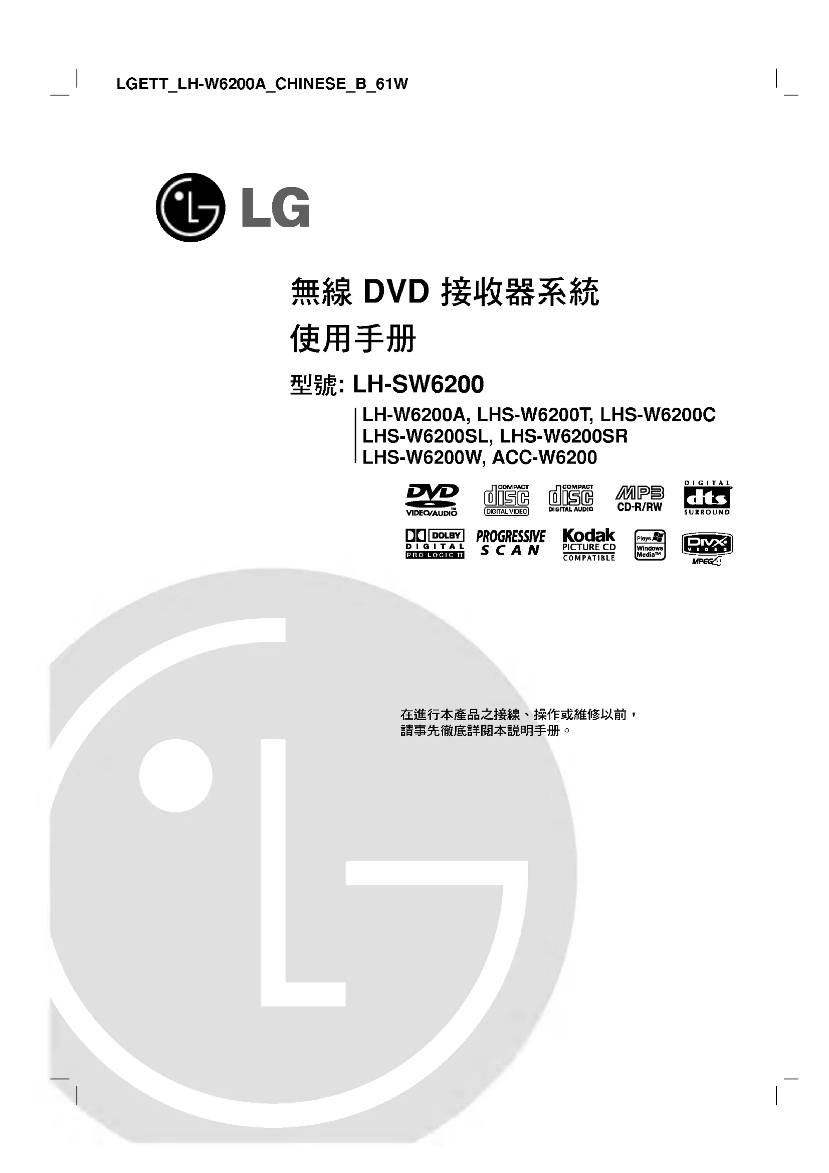 LH-SW6200 - Lecteur dvd LG - Notice d'utilisation et mode d'emploi gratuit