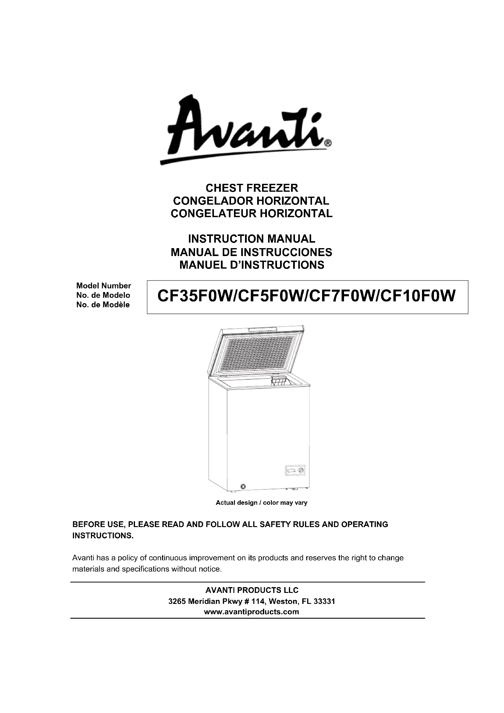 CF35F2G - Congélateur Avanti - Notice d'utilisation et mode d'emploi gratuit