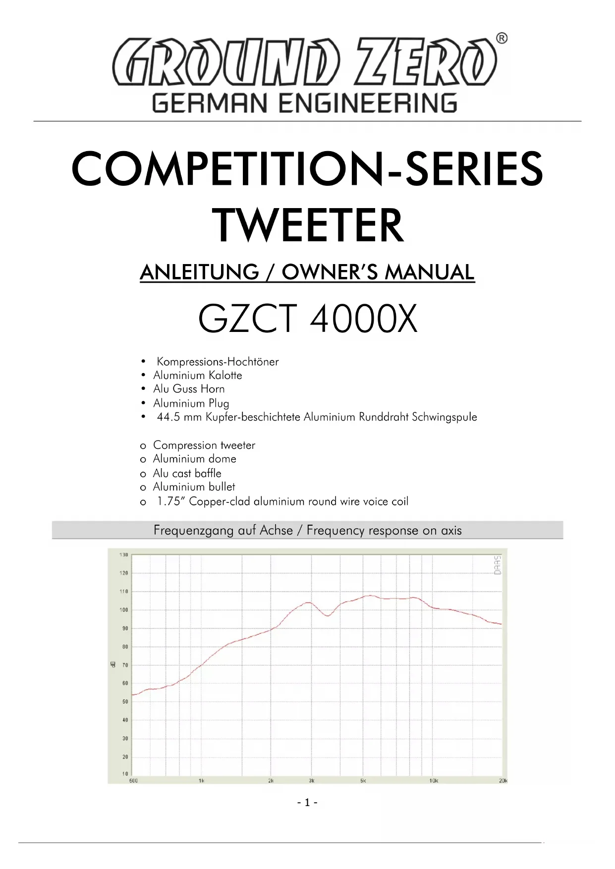 GZCT 4000X - Haut-parleur Ground Zero - Notice d'utilisation et mode d'emploi gratuit