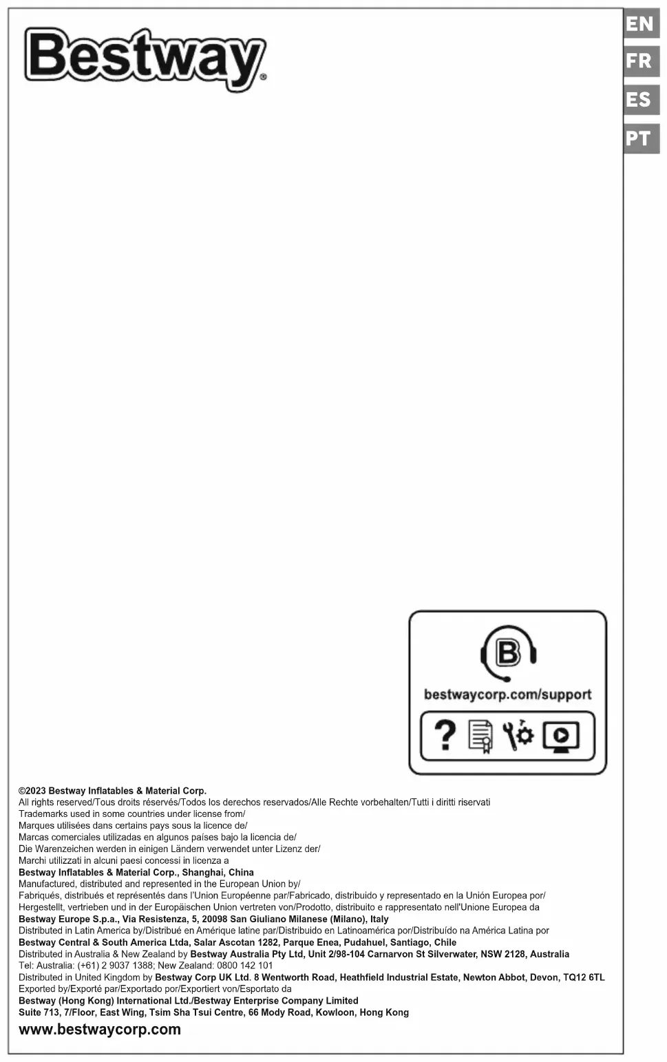 Pour toute information concernant les conditions de garantie, visitez notre site web sur www.bestwaycorp.com.