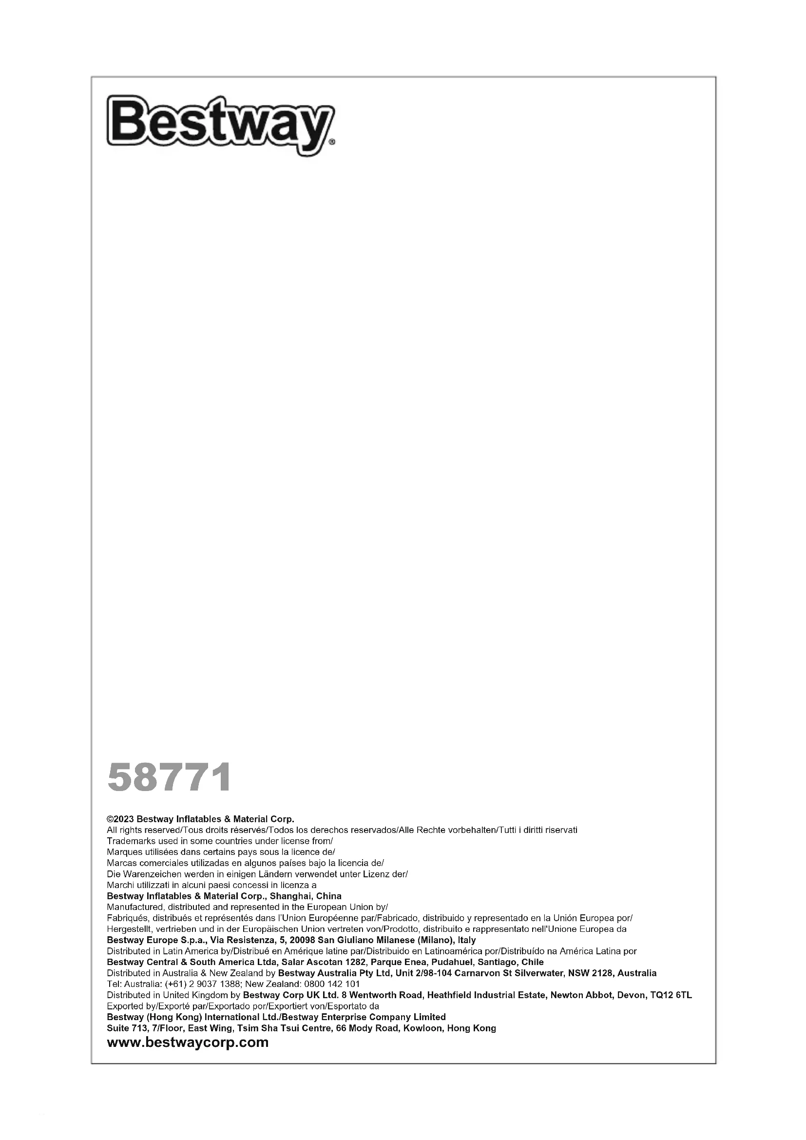 - En cas d’oubli d’une instruction, veuillez contacter Bestway ou la rechercher sur le site web : www.bestwaycorp.com.