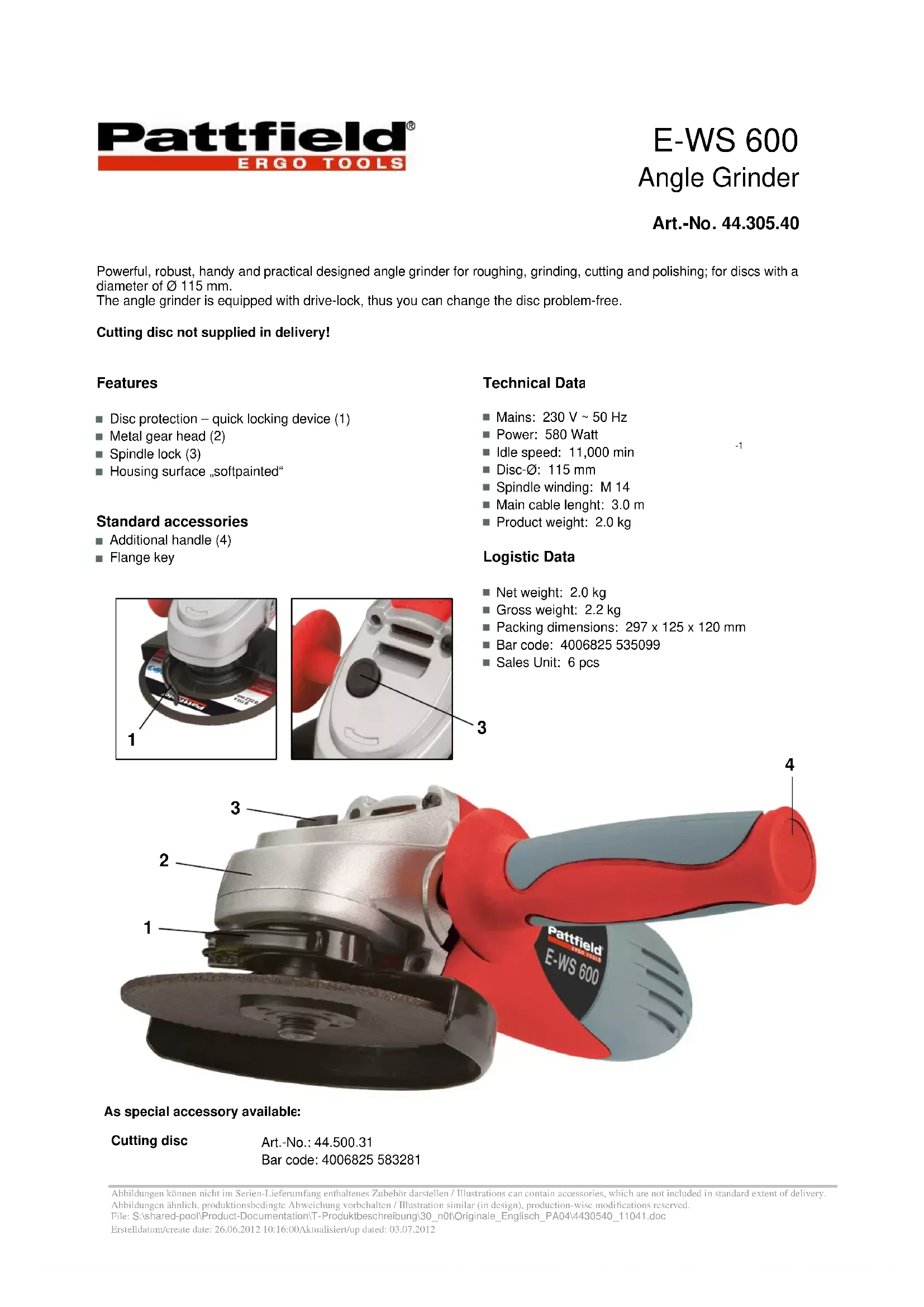 Retrouvez gratuitement la notice de l'appareil E-WS 600 Ergotools Pattfield au format PDF.
