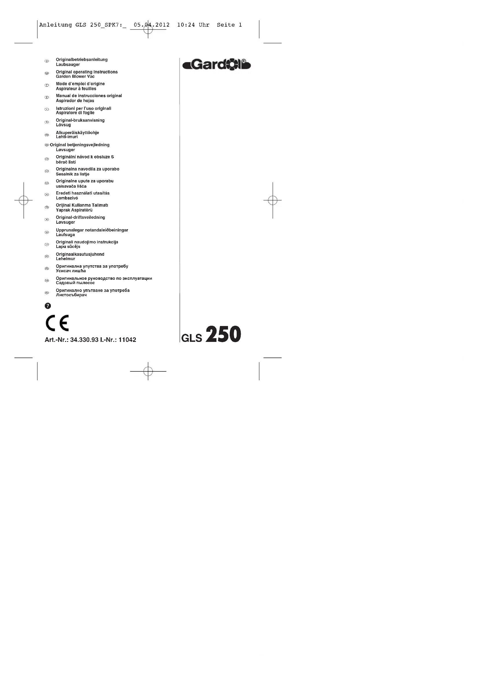 GLS 250 - Souffleur Gardol - Notice d'utilisation et mode d'emploi gratuit
