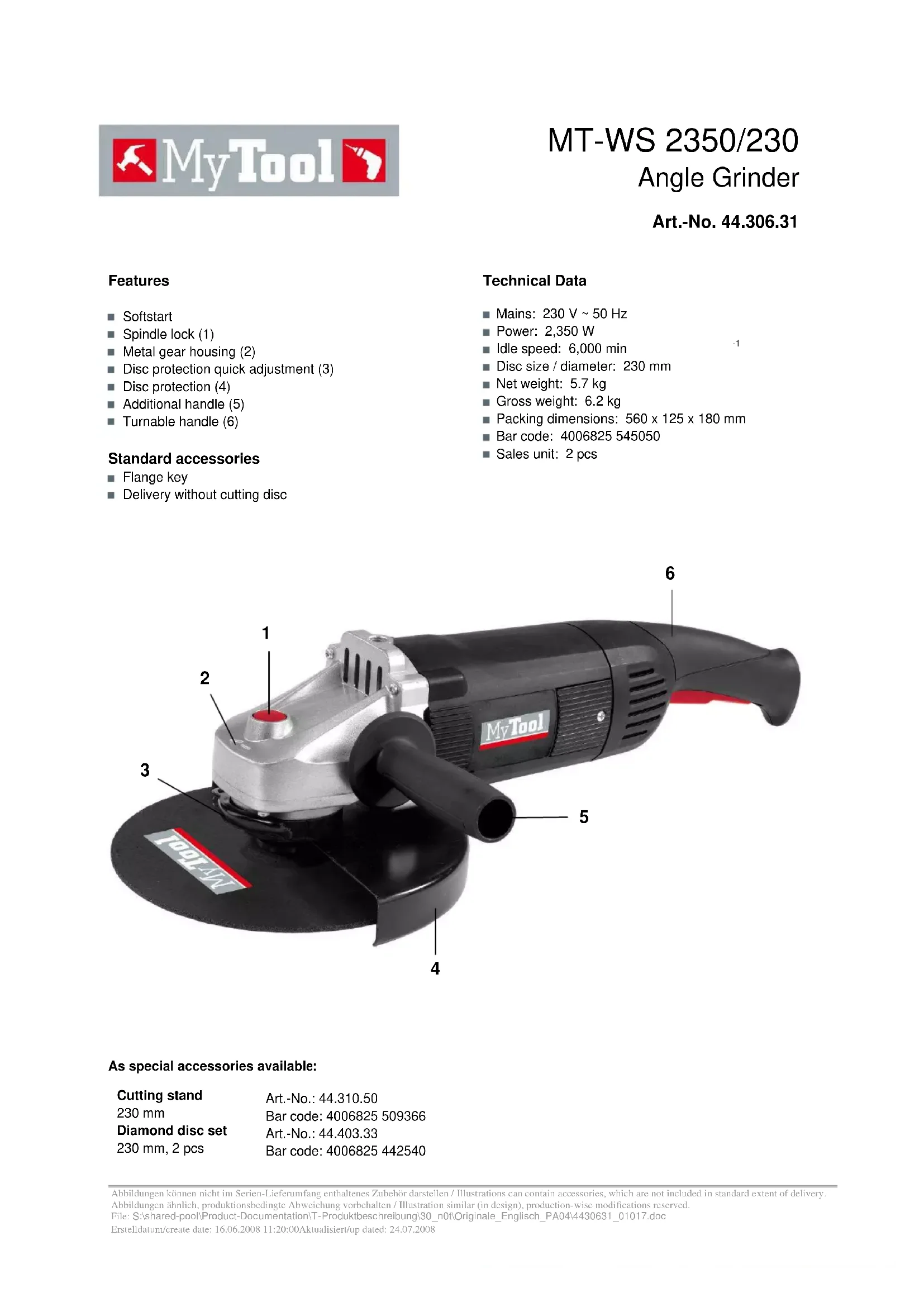Retrouvez gratuitement la notice de l'appareil MT-WS 2350/230 MyTool au format PDF.
