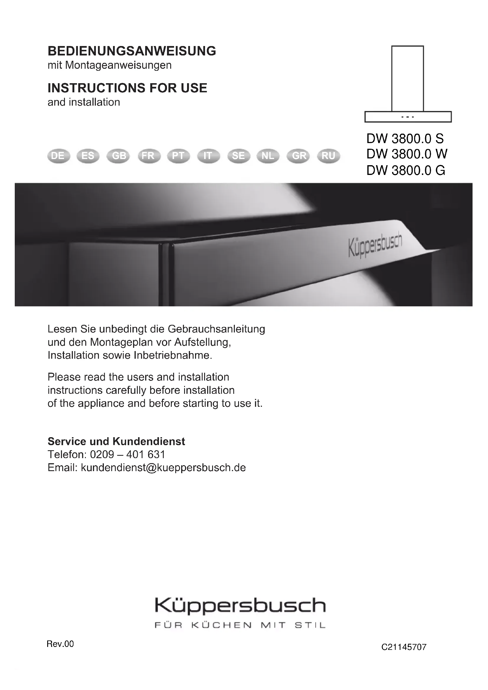 Téléchargez la notice de votre Hotte au format PDF gratuitement ! Retrouvez votre notice DW3800.0W - Küppersbusch et reprennez votre appareil électronique en main. Sur cette page sont publiés tous les documents nécessaires à l'utilisation de votre appareil DW3800.0W de la marque Küppersbusch.