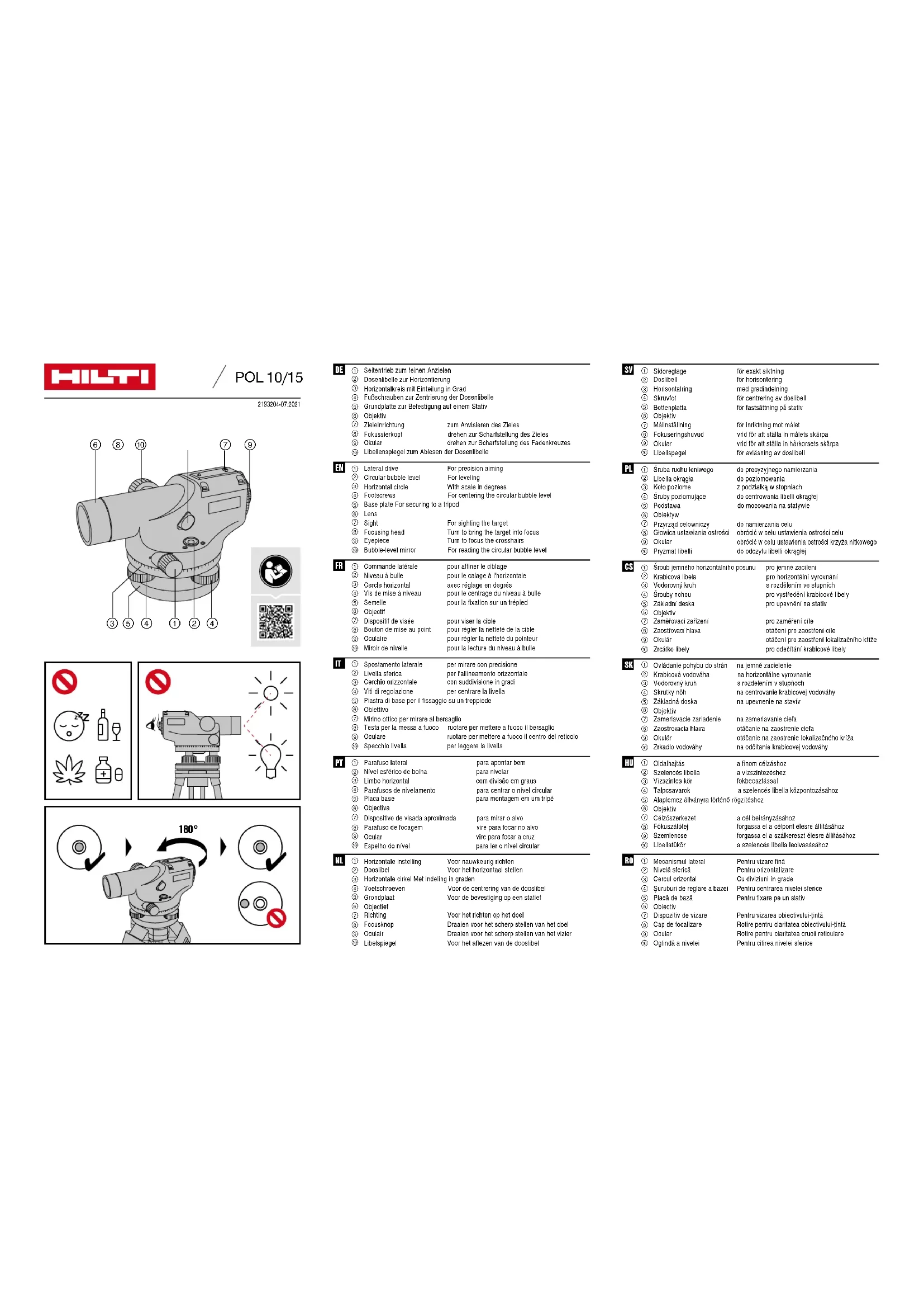 Retrouvez gratuitement la notice de l'appareil POL 10 HILTI au format PDF.