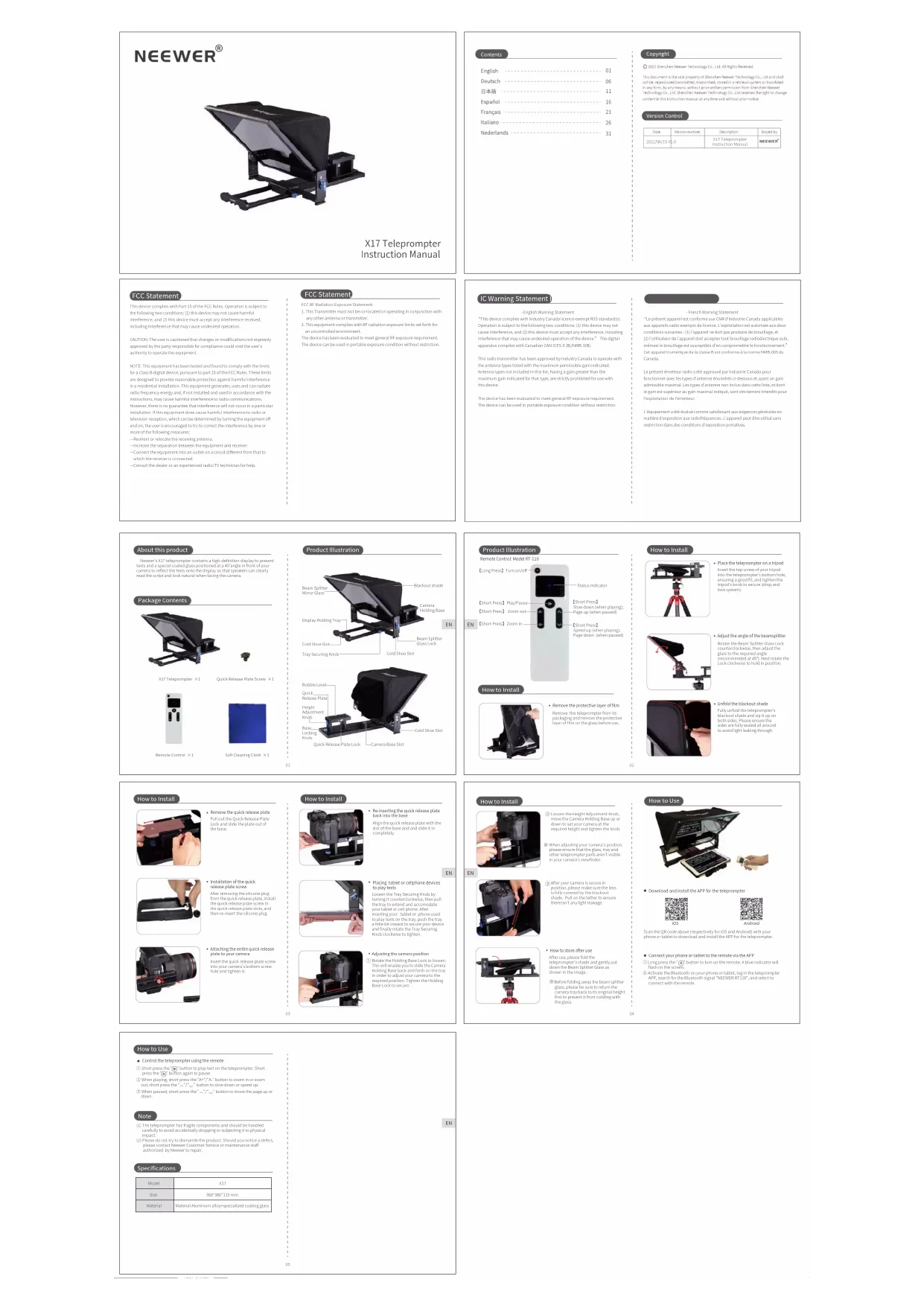 Retrouvez gratuitement la notice de l'appareil X17 Neewer au format PDF.