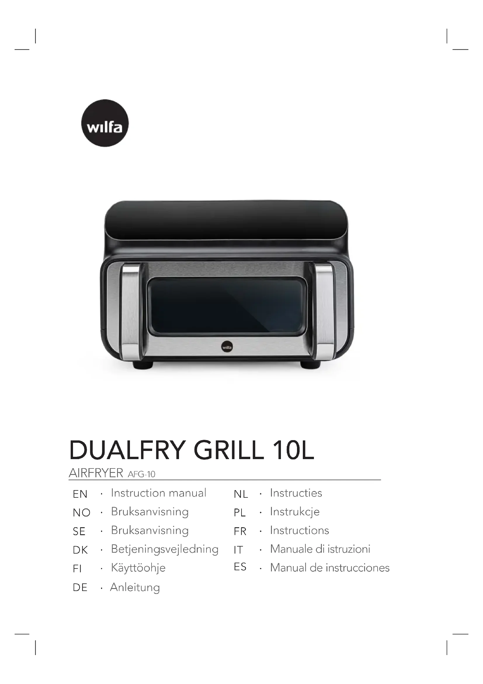 Retrouvez gratuitement la notice de l'appareil DualFry Grill 10 AFG-10 WILFA au format PDF.