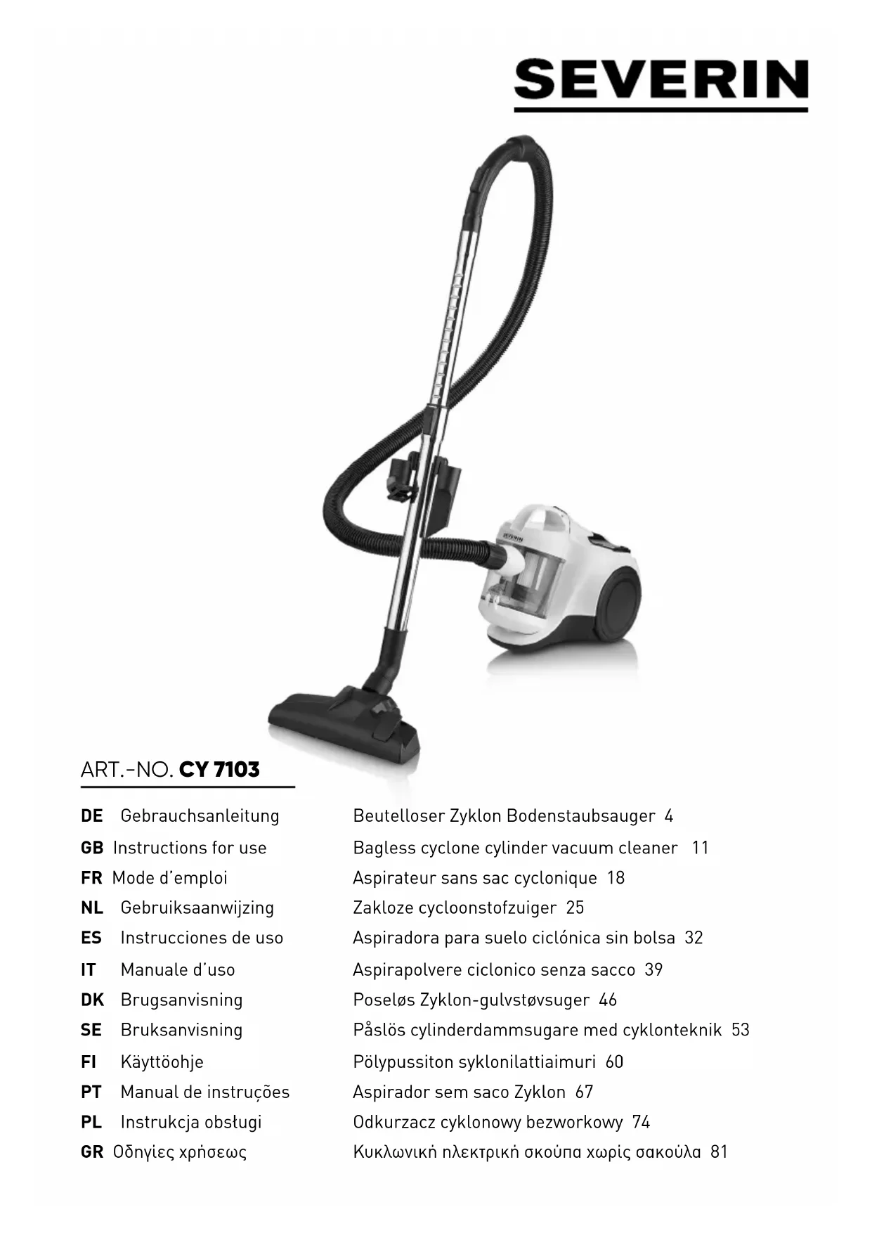 CY 7103 - Aspirateur SEVERIN - Notice d'utilisation et mode d'emploi gratuit