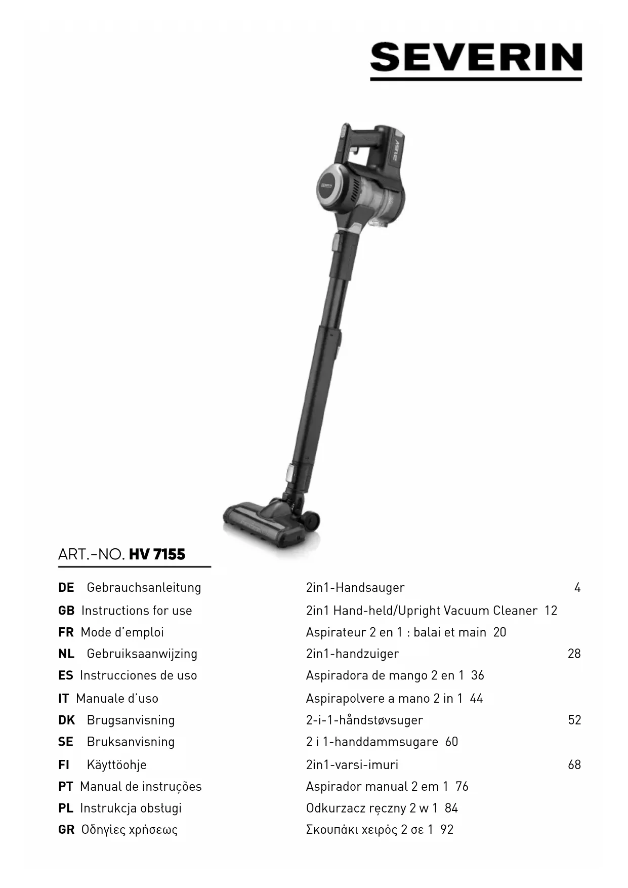HV 7155 - Aspirateur SEVERIN - Notice d'utilisation et mode d'emploi gratuit