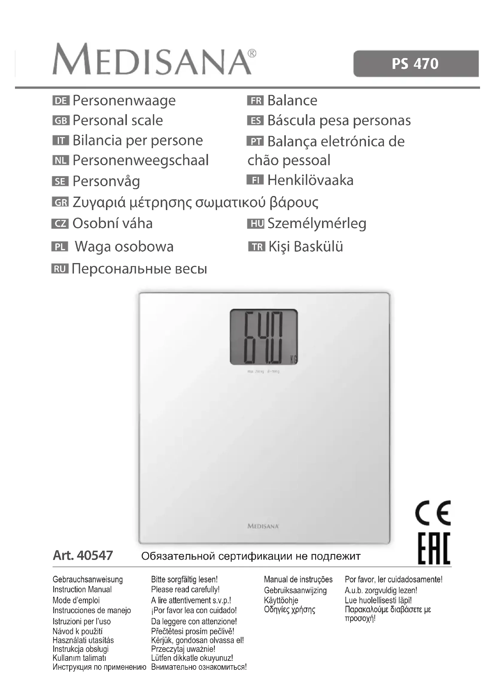 PS 470 - Balance MEDISANA - Notice d'utilisation et mode d'emploi gratuit