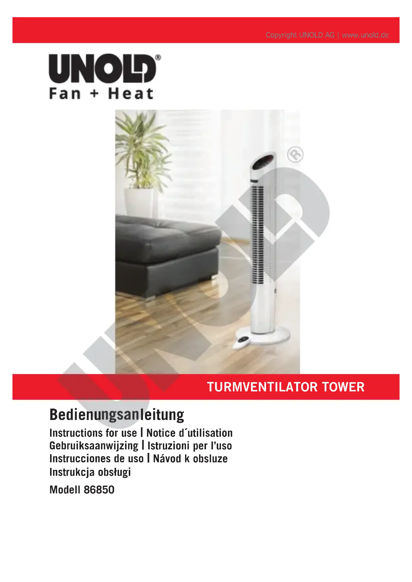 Tower 86850 - Ventilateur UNOLD - Notice d'utilisation et mode d'emploi gratuit
