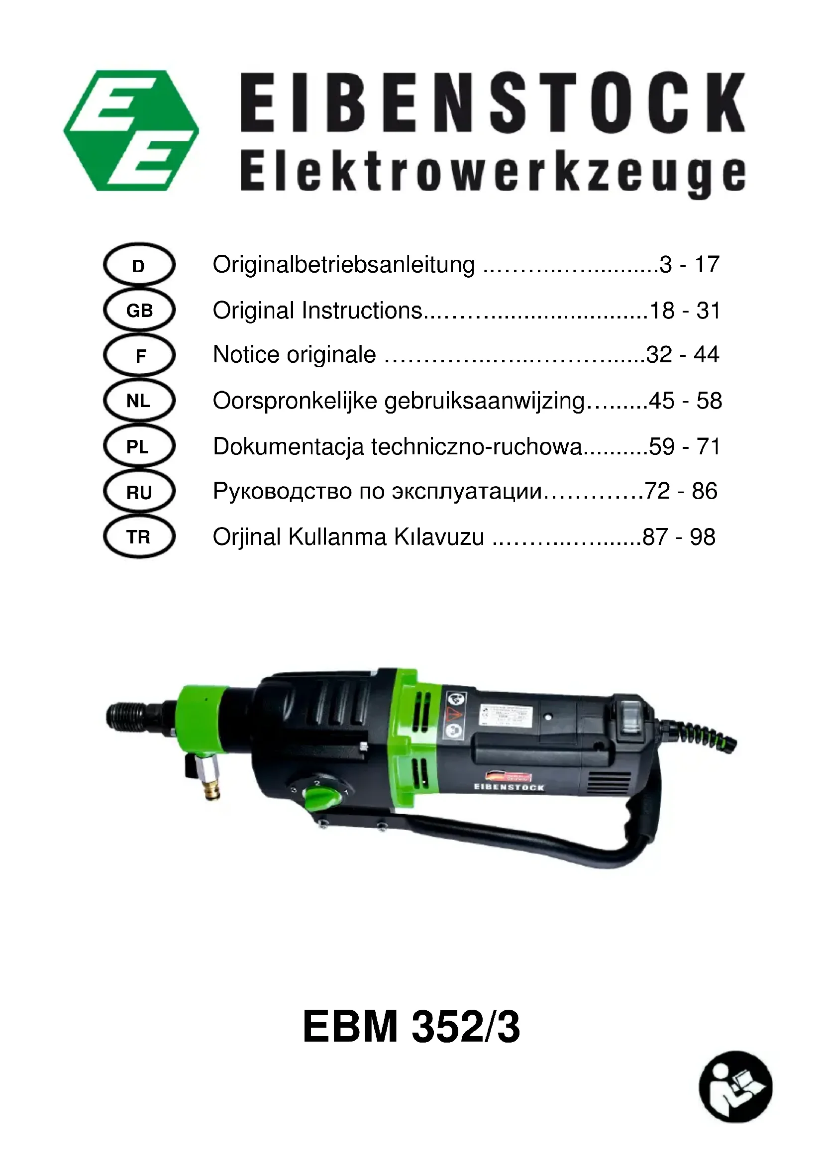 Retrouvez gratuitement la notice de l'appareil EBM 352/3 Eibenstock au format PDF.