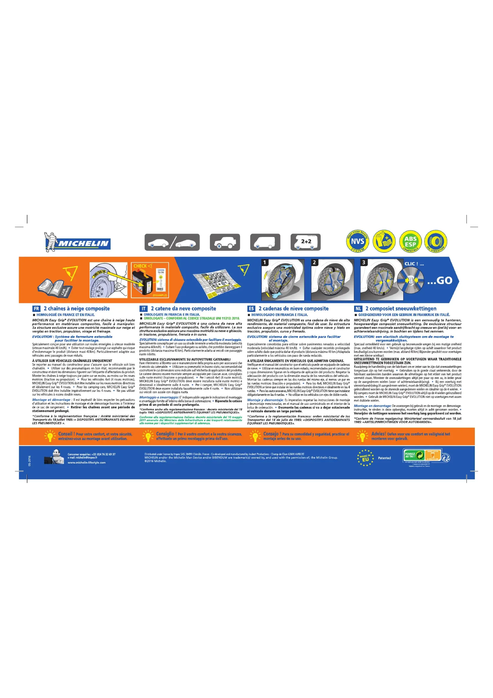 Easy Grip Evolution EVO 4 - Chaîne à neige MICHELIN - Notice d'utilisation et mode d'emploi gratuit