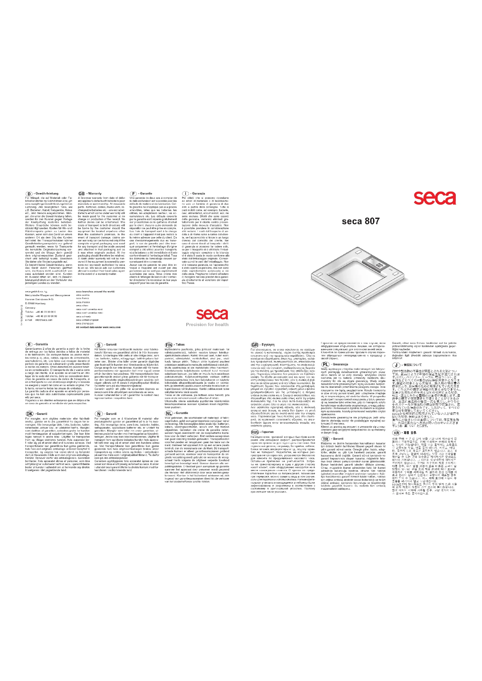 Retrouvez gratuitement la notice de l'appareil 807 SECA au format PDF.