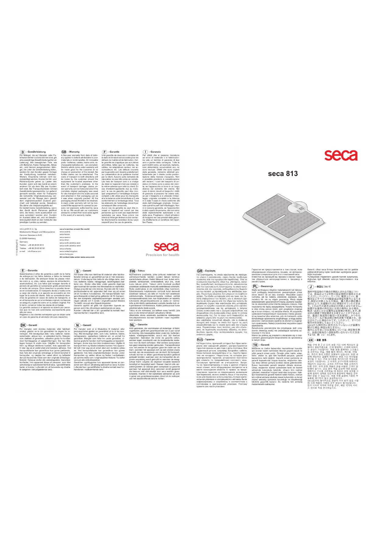 Retrouvez gratuitement la notice de l'appareil 813 SECA au format PDF.