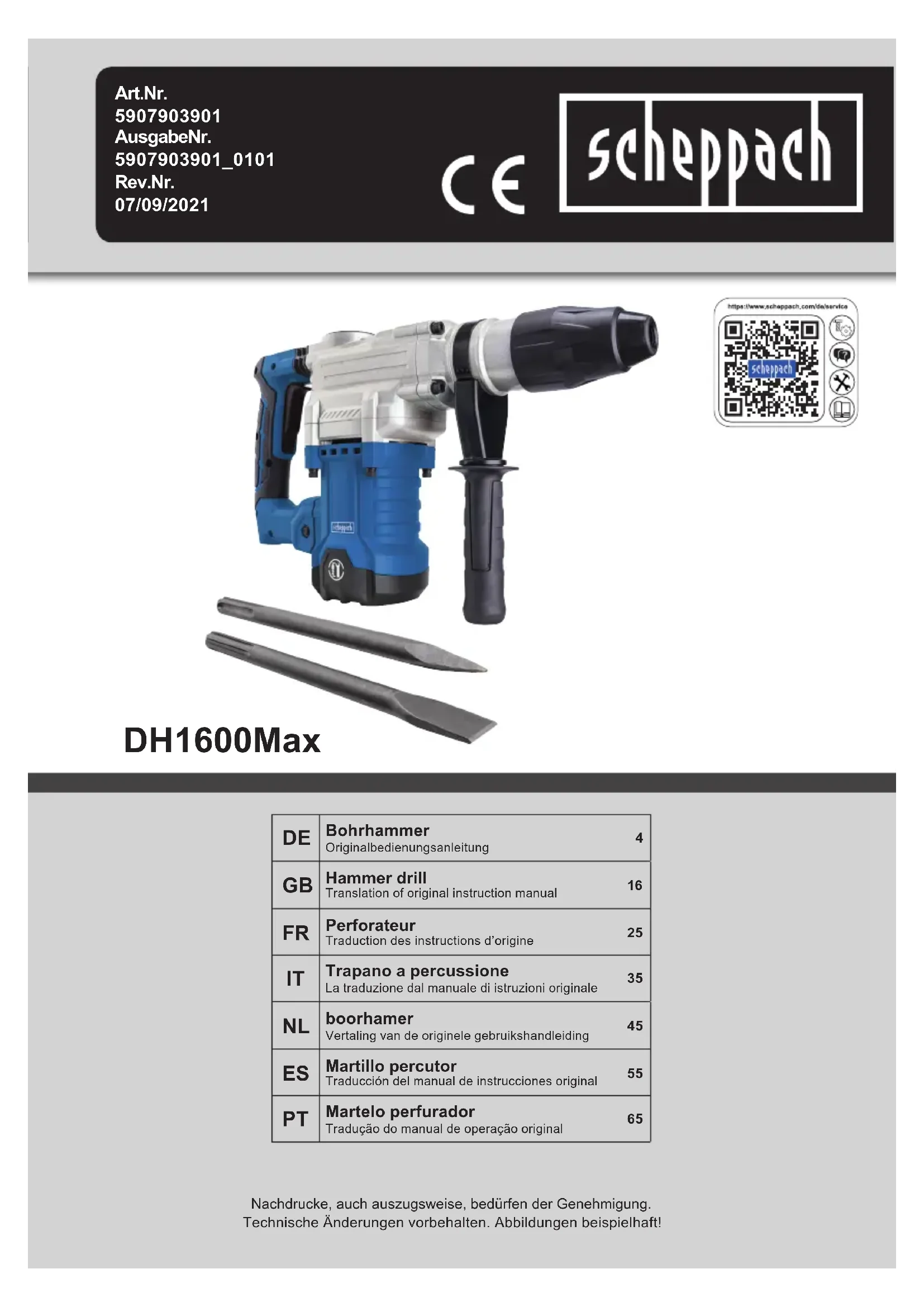 Retrouvez gratuitement la notice de l'appareil DH1600Max SCHEPPACH au format PDF.