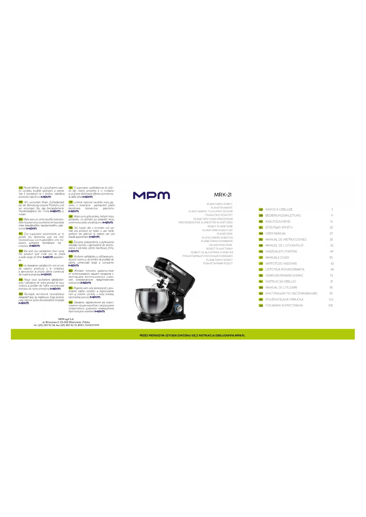 MRK-21 - Robot ménager MPM - Notice d'utilisation et mode d'emploi gratuit