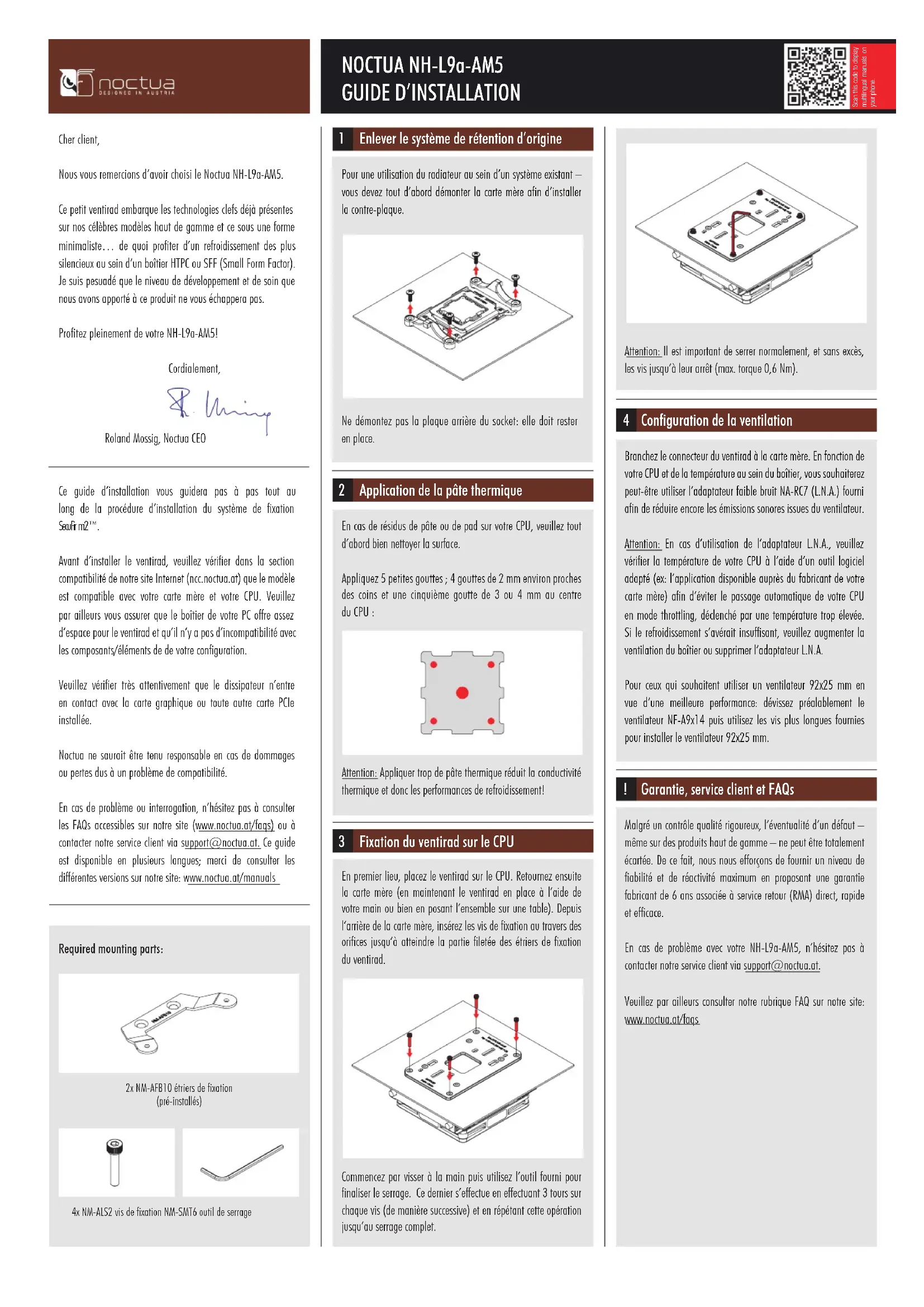 Retrouvez gratuitement la notice de l'appareil NH-L9a-AM5 Noctua au format PDF.