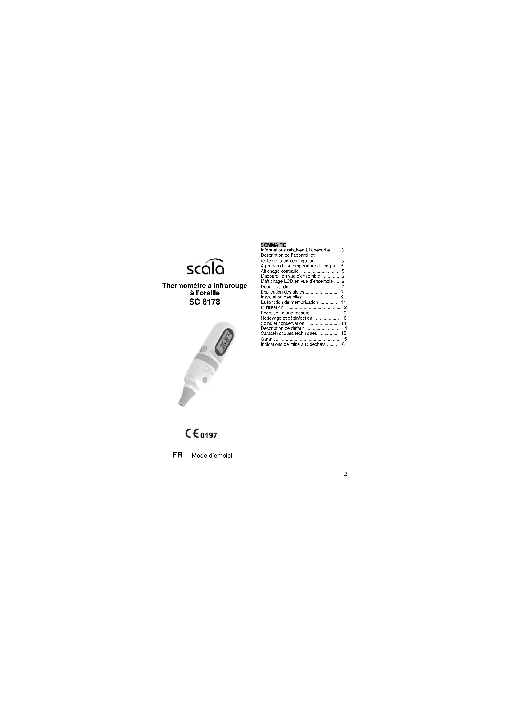 Téléchargez la notice de votre Thermomètre au format PDF gratuitement ! Retrouvez votre notice SC 8178 - Scala et reprennez votre appareil électronique en main. Sur cette page sont publiés tous les documents nécessaires à l'utilisation de votre appareil SC 8178 de la marque Scala.
