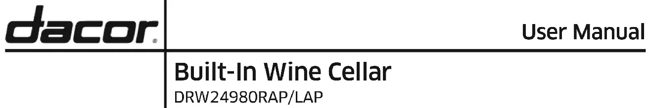 - Avant d'utiliser votre nouvelle cave à vins Dacor, veuillez lire attentivement ce manuel afin de vous assurer que vous savez comment utiliser de manière sûre et efficace ses différentes fonctions et fonctionnalités.