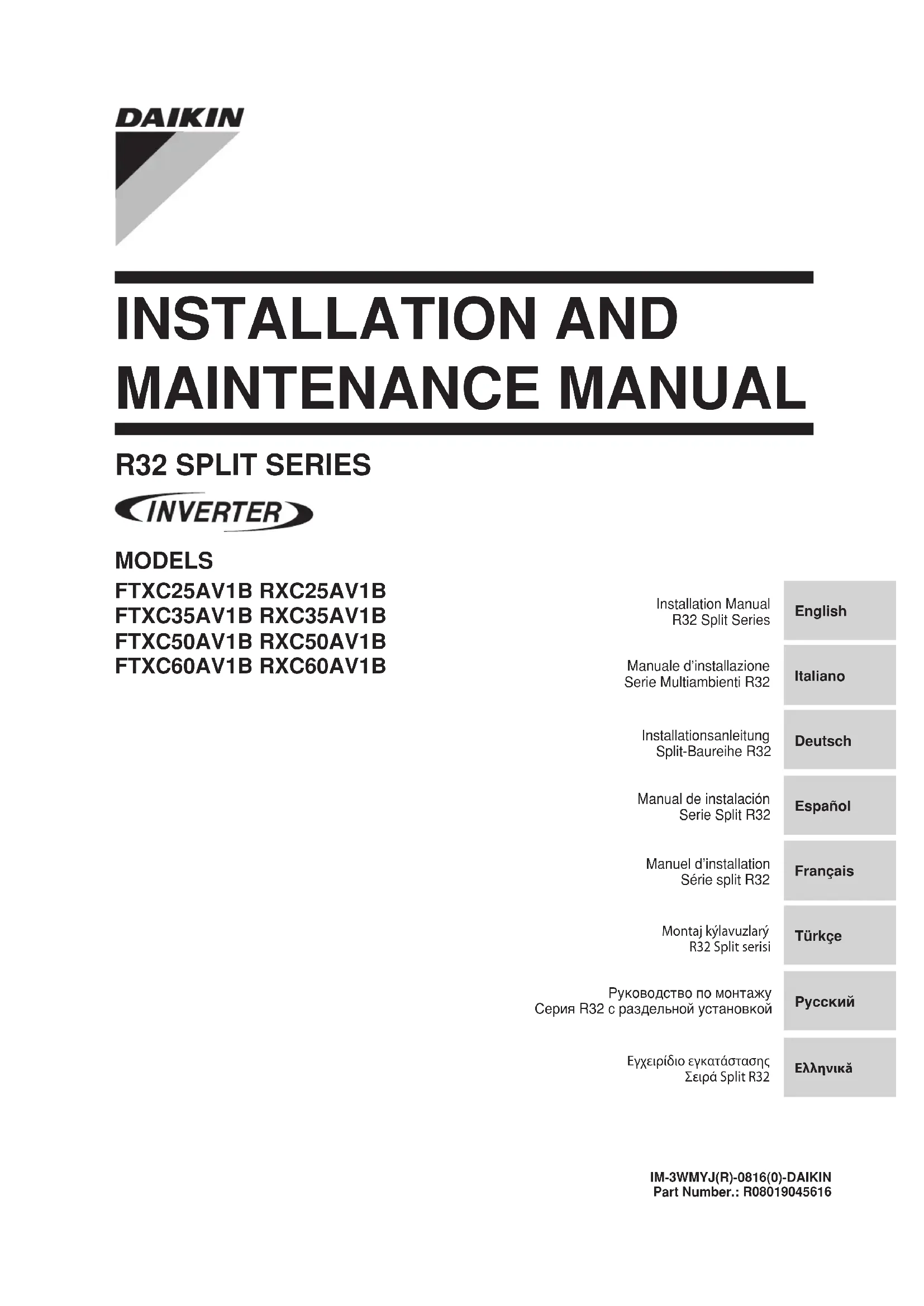 Retrouvez gratuitement la notice de l'appareil RXC60AV1B DAIKIN au format PDF.