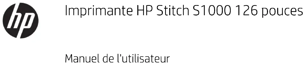 Balise d'état de l'imprimante FRWW 1Bienvenue dans votre imprimante Votre imprimante HP Stitch S1000 126 pouces est une imprimante à jet d'encre par sublimation destinée à l’impression de conceptions de haute qualité d'une largeur pouvant atteindre 3,2 m. Les fonctions principales sont les suivantes : ● Des images de haute qualité, avec des noirs profonds et des couleurs vives, avec une résolution native de 1200 ppp et des gouttelettes d’encre de 12 picolitres ● Chargez les rouleaux de papier ou de tissu jusqu’à 300 kg ● Éclairage LED de zone d’impression accessible et contrôle instantané avec signaux de balise ● Longues installations sans surveillance avec cartouches de 10 l ● Impressions complètement sèches et bien serrées, prêtes pour le calendrage ● Impressions sur une large variété de papier (> 45 g/m²) et de textiles (> 90 g/m²) ● Une qualité d’impression constante et reproductible avec les têtes d’impression remplaçables par l’utilisateur et le système de compensation des buses intelligents ● Maintenance automatique pour garantir l’intégrité des buses ● Contrôle avancé optimal avec le nouveau capteur d’avance substrat intégré permettant de contrôler les tissus même à grande vitesse ● Séchage de zone d’impression à séchage unique pour optimiser le contrôle du papier et l’emplacement des gouttes ● Outils de gestion de la couleur faciles à utiliser pour une correspondance améliorée et davantage de concordance des couleurs ● Une programmation de la maintenance et des alertes de maintenance proactives HP Print Care ● Rouleur d’équilibre d’entrée et de sortie pour une commande sans surveillance de la tension du papier à très faible grammage ● Kit collecteur d’encre pour une impression able sur des tissus poreux tels que les drapeaux ● Compatible avec l’accessoire double rouleau ● Canal d’extracteur aérosol intelligent intégré pour améliorer la robustesse de l’imprimante ● Elle inclut un chauage de contact pour aider à sécher le substrat. Documentation Il est possible de télécharger les documents suivants sur le site http://www.hp.com/go/StitchS1000126in/ manuals/ : ● Guide de préparation du site ● Guide d'installation ● Introduction - informations ● Manuel de l’utilisateur (le présent document) ● Informations légales ● Garantie limitée 2 Chapitre 1 Introduction FRWWConsultez le site Web Solutions pour plus d'informations sur les nouveaux substrats, à l'adresse http://www.hp.com/go/StitchS1000126in/support/. Une nouvelle application de recherche de supports en ligne (http://www.hp.com/go/mediasolutionslocator) est en cours de développement pour faire connaître les congurations de substrats disponibles pour les imprimantes Stitch. Mesures de sécurité Avant d’utiliser votre imprimante, lisez les consignes de sécurité et les instructions de fonctionnement suivantes an que les équipements soient utilisés en toute sécurité. L'utilisateur doit avoir été formé de manière adaptée et posséder l'expérience nécessaire pour être conscient des risques auxquels il s'expose en réalisant une tâche. Il doit également prendre les mesures qui s'imposent pour minimiser les risques pour lui-même et les autres. Les opérations doivent être supervisées en permanence. Instructions générales de sécurité AVERTISSEMENT ! Les informations fournies par le voyant d'état de l'imprimante sont uniquement à des ns informatives fonctionnelles et ne sont pas liées à aucune provision de sécurité ou états de sécurité. Les étiquettes d'avertissement sur l'imprimante doivent toujours être prise en considération lors de l'utilisation de l'imprimante et prévalent sur tout statut indiqué par le système de statut de l'imprimante. Mettez l'imprimante hors tension à l'aide des disjoncteurs de branchement situés dans l'unité de distribution électrique (PDU) du bâtiment et appelez votre responsable du service maintenance (voir Centres d’assistance clientèle HP à la page 263) dans les cas suivants : ● Le cordon d'alimentation est endommagé. ● Le boîtier de séchage est endommagé. ● L'imprimante a été endommagée par un impact. ● Un liquide s’est introduit dans l’imprimante. ● L’imprimante émet de la fumée ou une odeur inhabituelle. ● Le disjoncteur résiduel (disjoncteur de mise à la terre) intégré de l’imprimante s’est déclenché de façon répétée. ● Des fusibles ont sauté. ● Le fonctionnement de l’imprimante n’est pas normal. ● Le mécanisme ou le boîtier sont endommagés. Mettez l'imprimante hors tension à l'aide des disjoncteurs de branchement dans les situations suivantes : ● Pendant un orage ● Au cours d'une coupure de courant Prenez des précautions particulières avec les zones marquées d'étiquettes d'avertissement. Risque d’électrocution AVERTISSEMENT ! Les circuits internes et le système de séchage fonctionnent à des tensions dangereuses capables d’entraîner la mort ou de graves blessures corporelles. FRWW Mesures de sécurité 3Mettez l'imprimante hors tension en utilisant les disjoncteurs de branchement situés dans l’unité d'alimentation (UDP) du bâtiment avant de procéder à l'entretien de l'imprimante. Vous ne devez brancher l’imprimante que sur des prises électriques raccordées à la terre. Pour éviter tout risque d’électrocution : ● N'essayez pas de démonter le module de séchage, le chauage de contact ou l'armoire électrique pendant l'exécution de tâches de maintenance du matériel. Dans ce cas, suivez les instructions à la lettre. ● N'ouvrez aucun autre capot du système et ne retirez aucune prise. ● N’insérez aucun objet par les fentes de l’imprimante. ● Testez la fonctionnalité du disjoncteur diérentiel à courant résiduel (RRB) tous les ans (consultez la procédure ci-dessous). REMARQUE : Un fusible qui a sauté peut signaler un