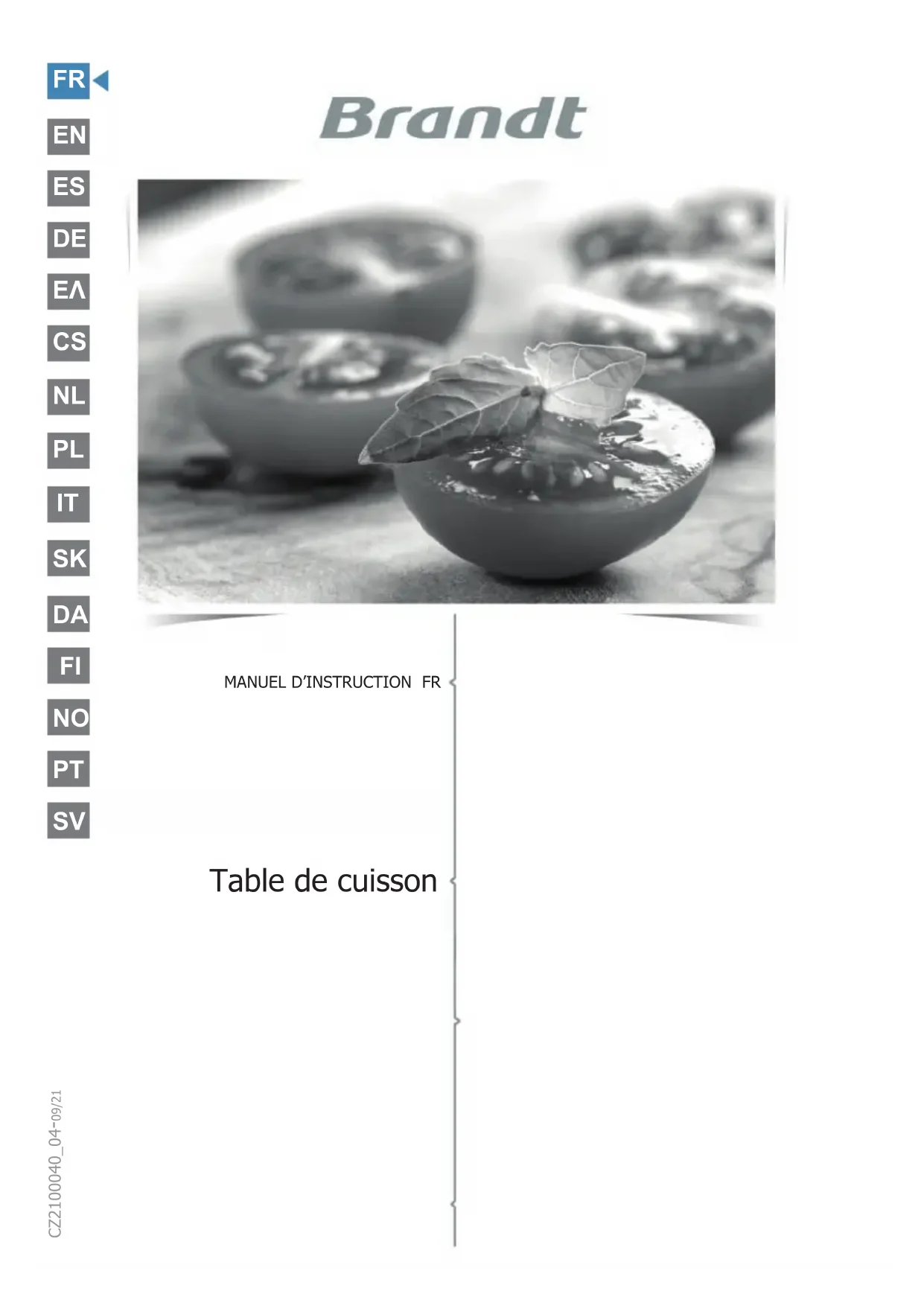 SVImportant : Avant de mettre votre appareil en marche, veuillez lire attentivement ce guide afin de vous familiariser plus rapidement avec son fonctionnement. Chère Cliente, Cher Client, Vous venez d’acquérir un produit BRANDT et nous vous remercions de la confiance que vous nous accordez. Nous avons conçu et fabriqué ce produit en pensant à vous, à votre mode de vie, à vos besoins, pour qu’il réponde au mieux à vos attentes. Nous y avons mis notre savoir-faire, notre esprit d’innovation et toute la passion qui nous anime depuis plus de 60 ans. Dans un souci permanent de toujours mieux satisfaire vos exigences, notre service consommateurs est à votre disposition et à votre écoute pour répondre à toutes vos questions ou suggestions. Connectez-vous aussi sur notre site www.brandt.com où vous trouverez nos dernières innovations, ainsi que des informations utiles et complémentaires. BRANDT est heureux de vous accompagner au quotidien et vous souhaite de profiter pleinement de votre achat. https://brandt.fr/ FRTables des matièresTables des matières