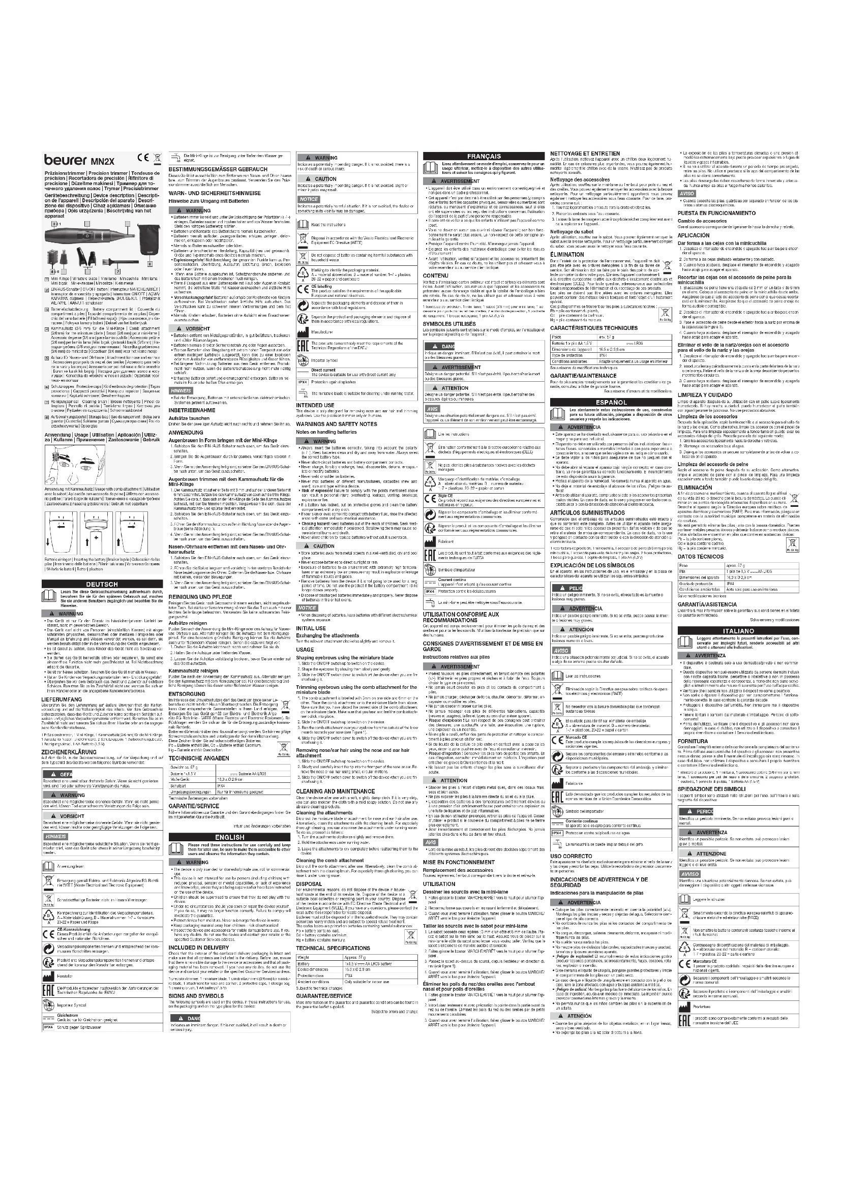 MN2X - Tondeuse à barbe BEURER - Notice d'utilisation et mode d'emploi gratuit