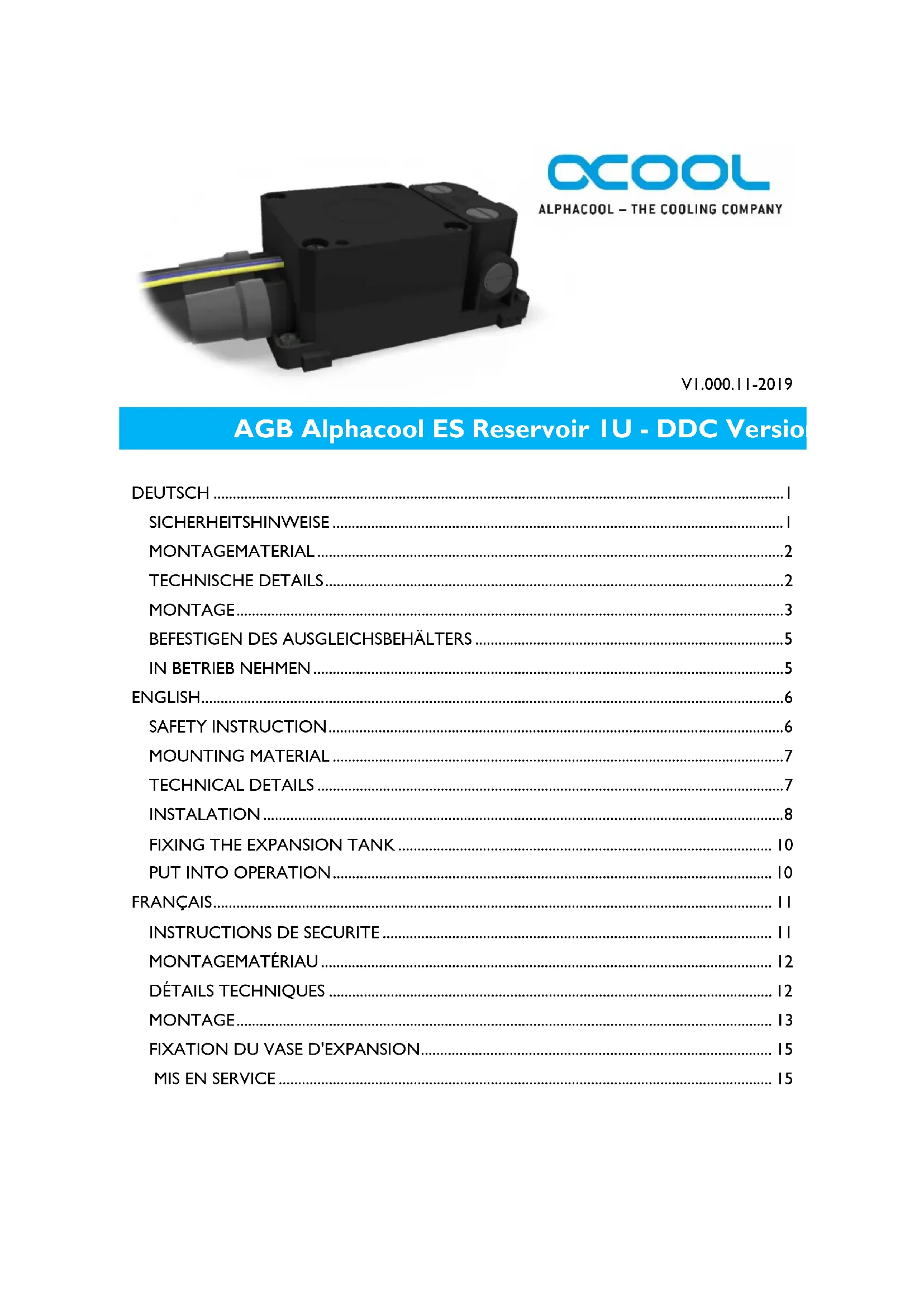 MODE D'EMPLOI ES Reservoir 1U Alphacool