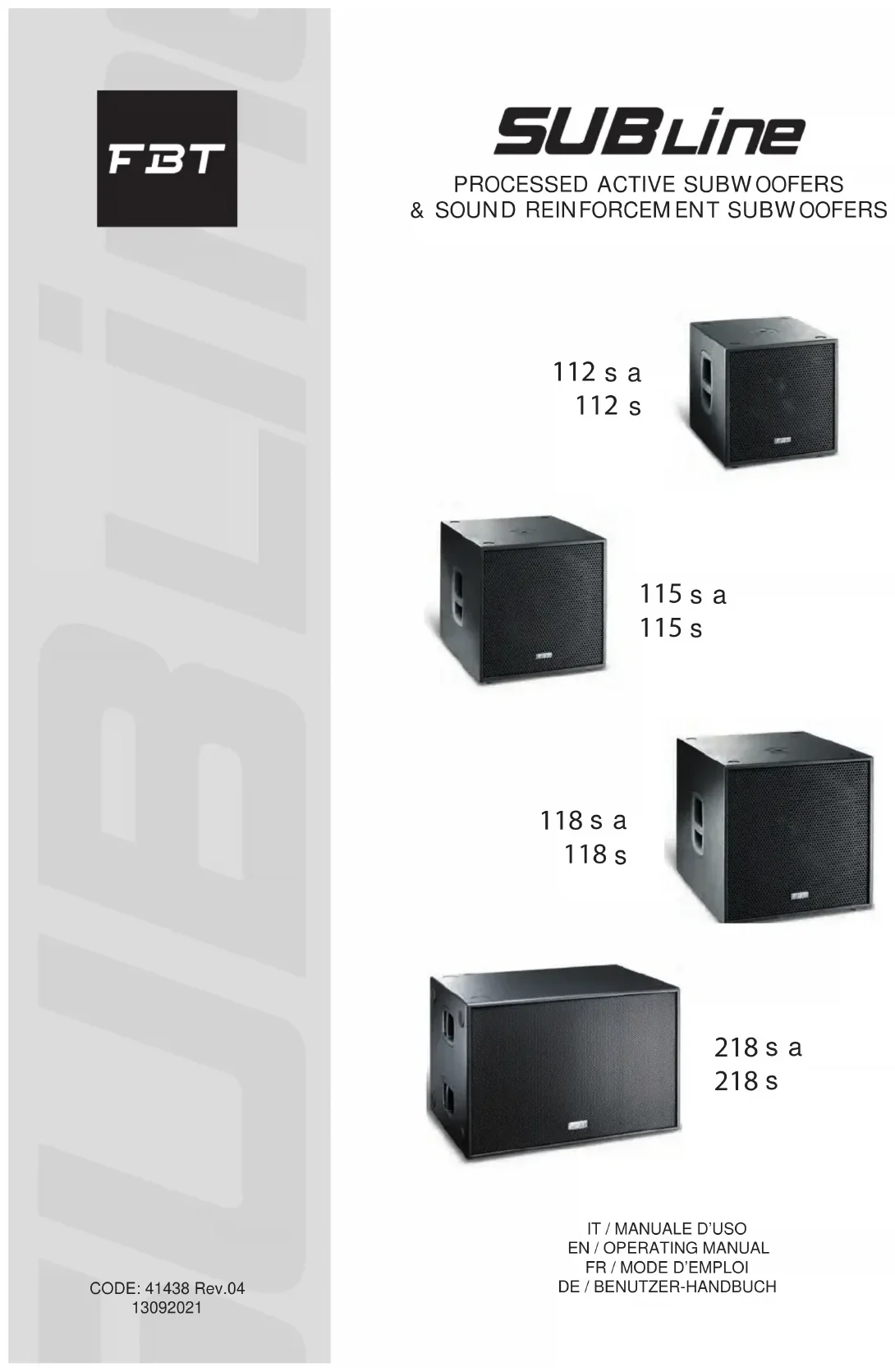 SUBLINE 218S - Caisson de basses FBT - Notice d'utilisation et mode d'emploi gratuit