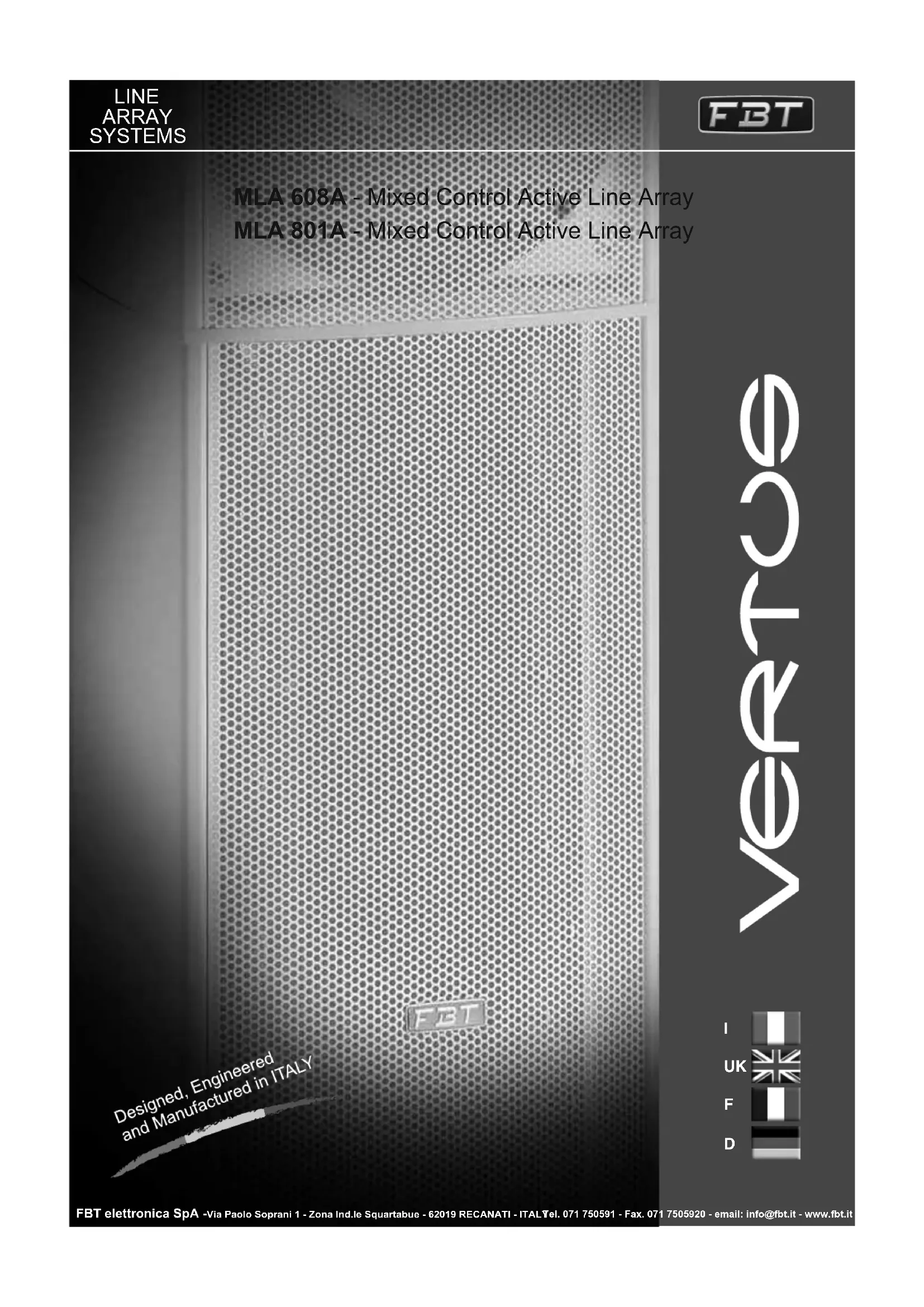 VERTUS MLA 801A - Haut-parleur FBT - Notice d'utilisation et mode d'emploi gratuit
