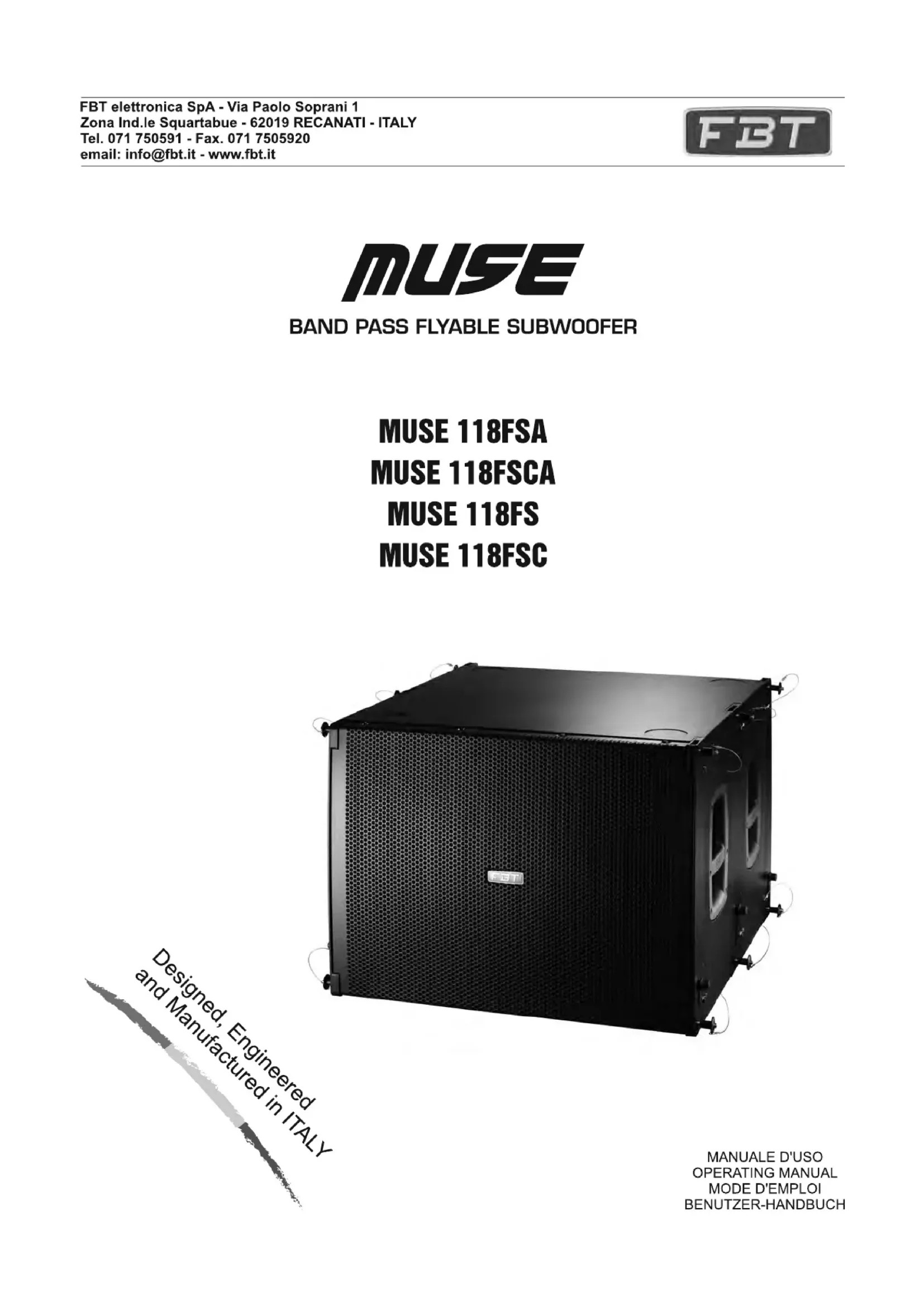 MUSE 118FSA - Caisson de basses FBT - Notice d'utilisation et mode d'emploi gratuit