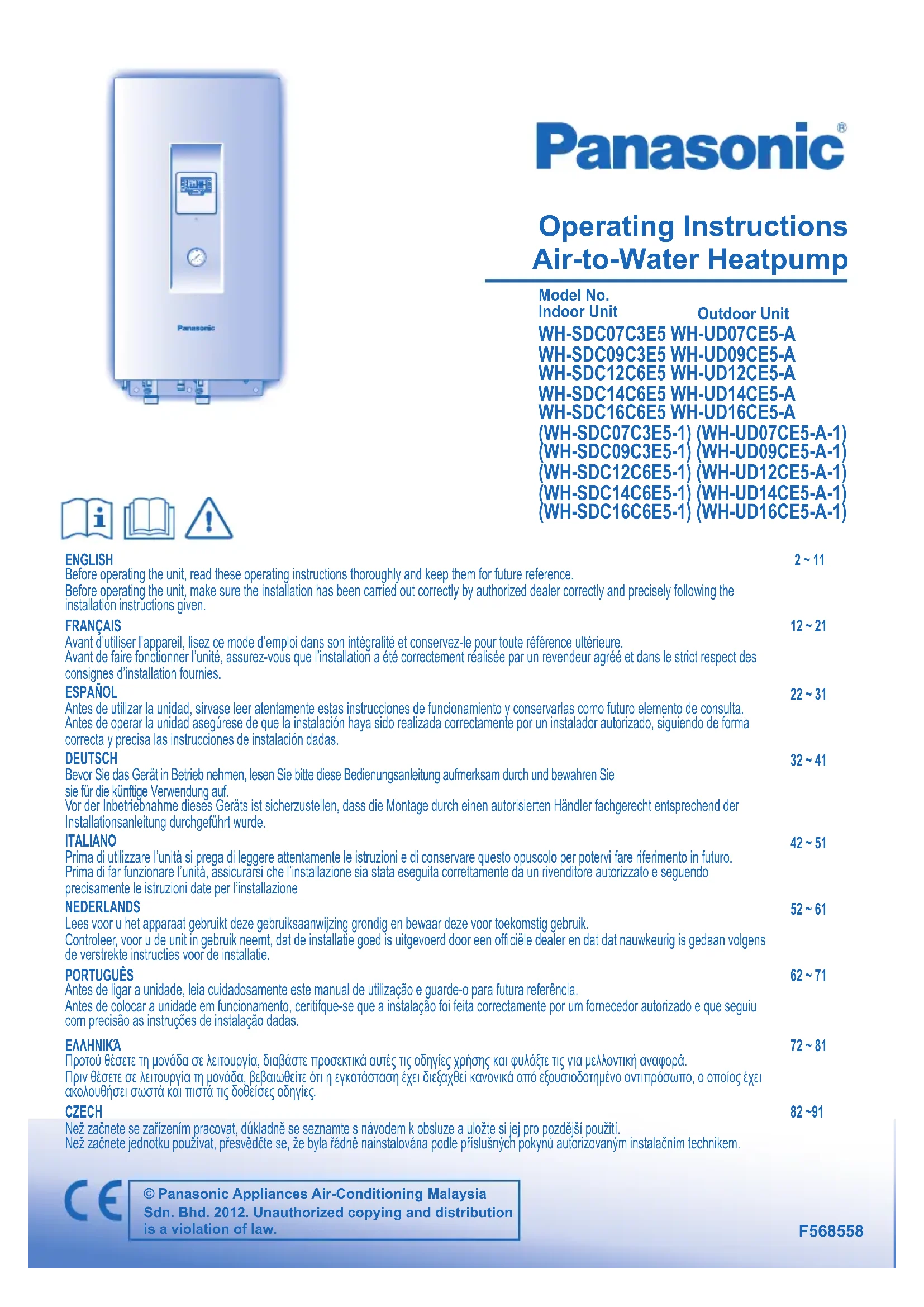 WH-SDC09C3E5-1 - Climatisation PANASONIC - Notice d'utilisation et mode d'emploi gratuit